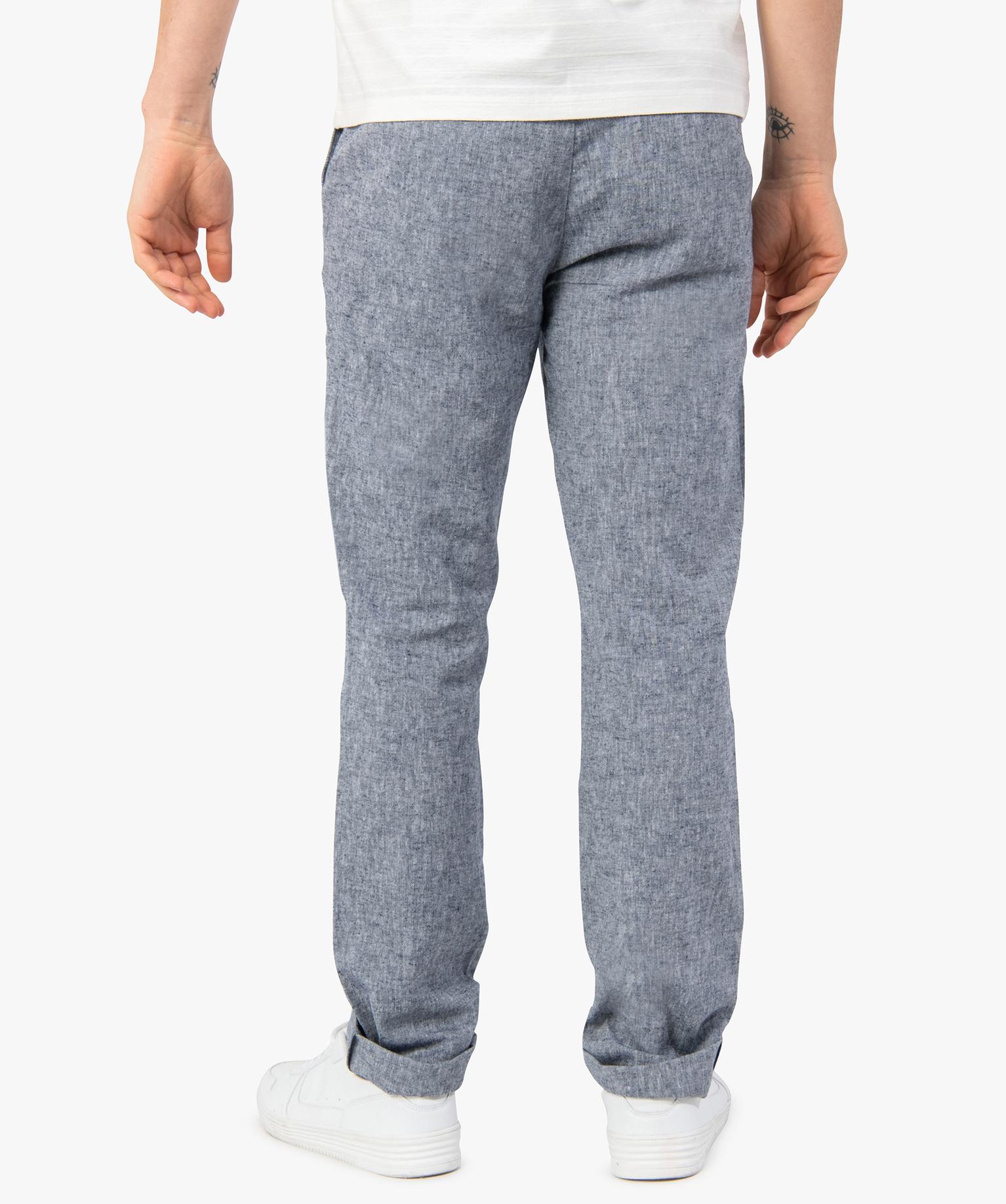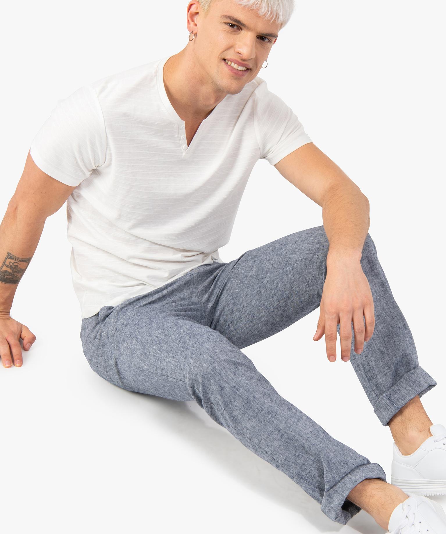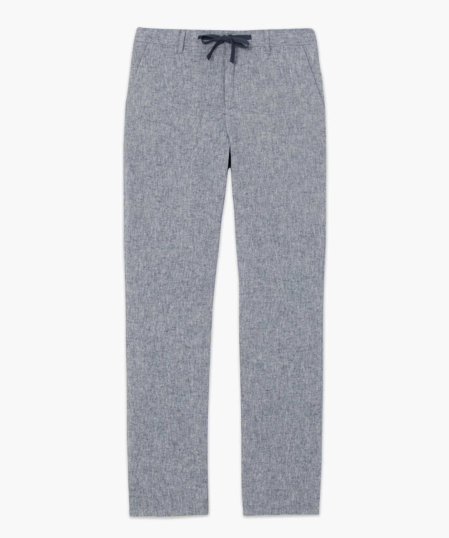 Pantalon homme en lin et coton avec taille ajustable bleu fonce