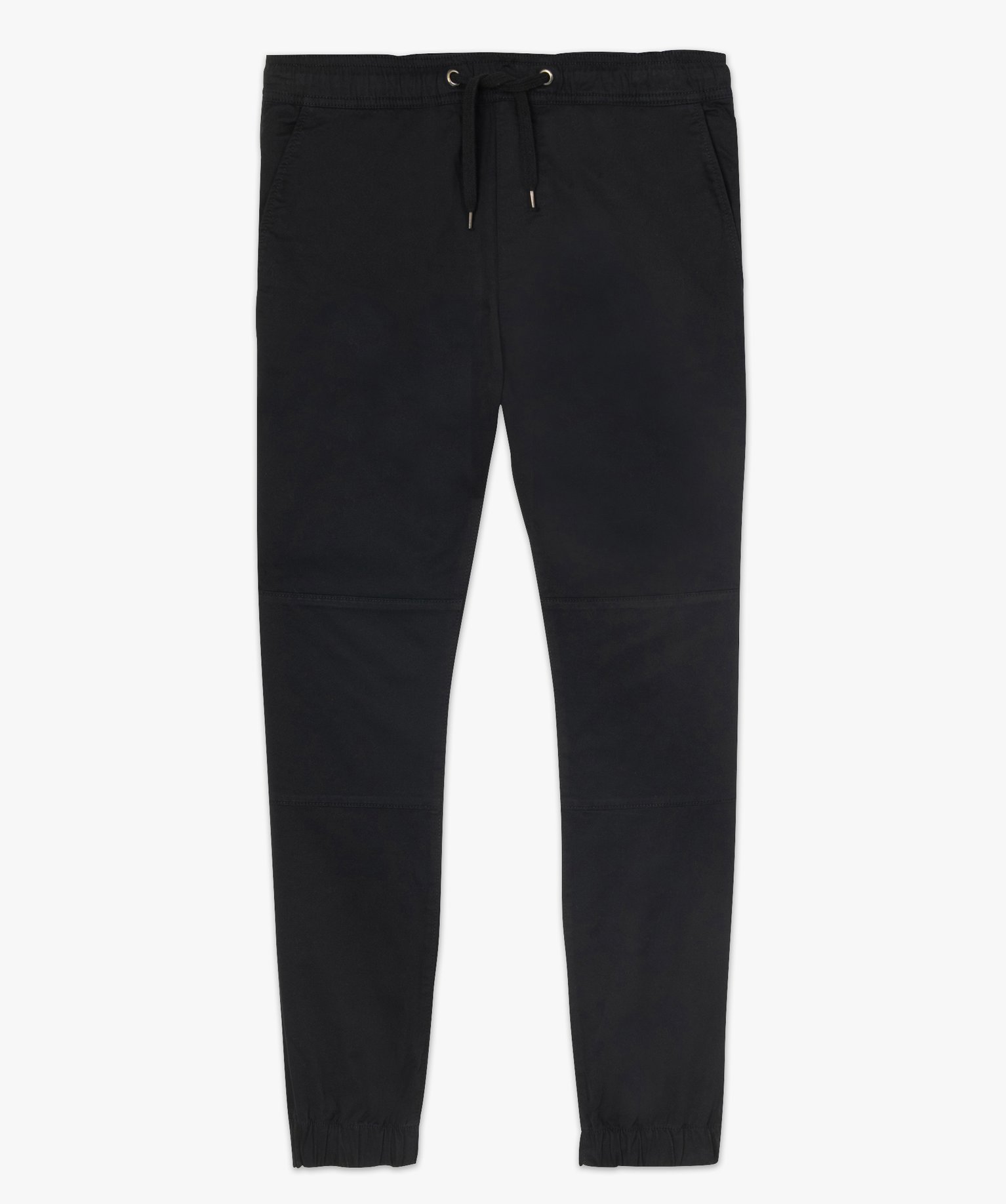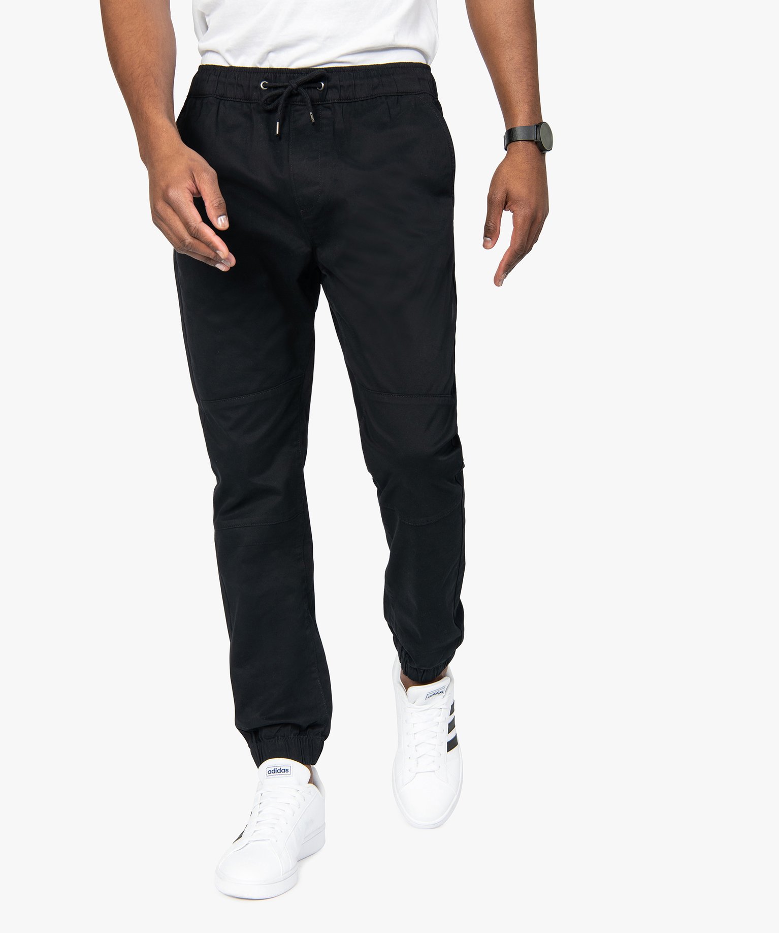 Pantalon homme en toile avec taille et bas élastiqué noir