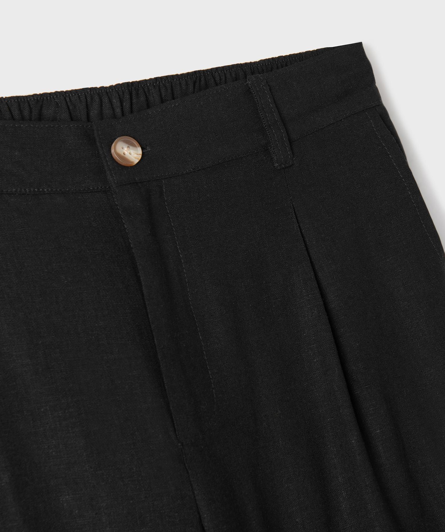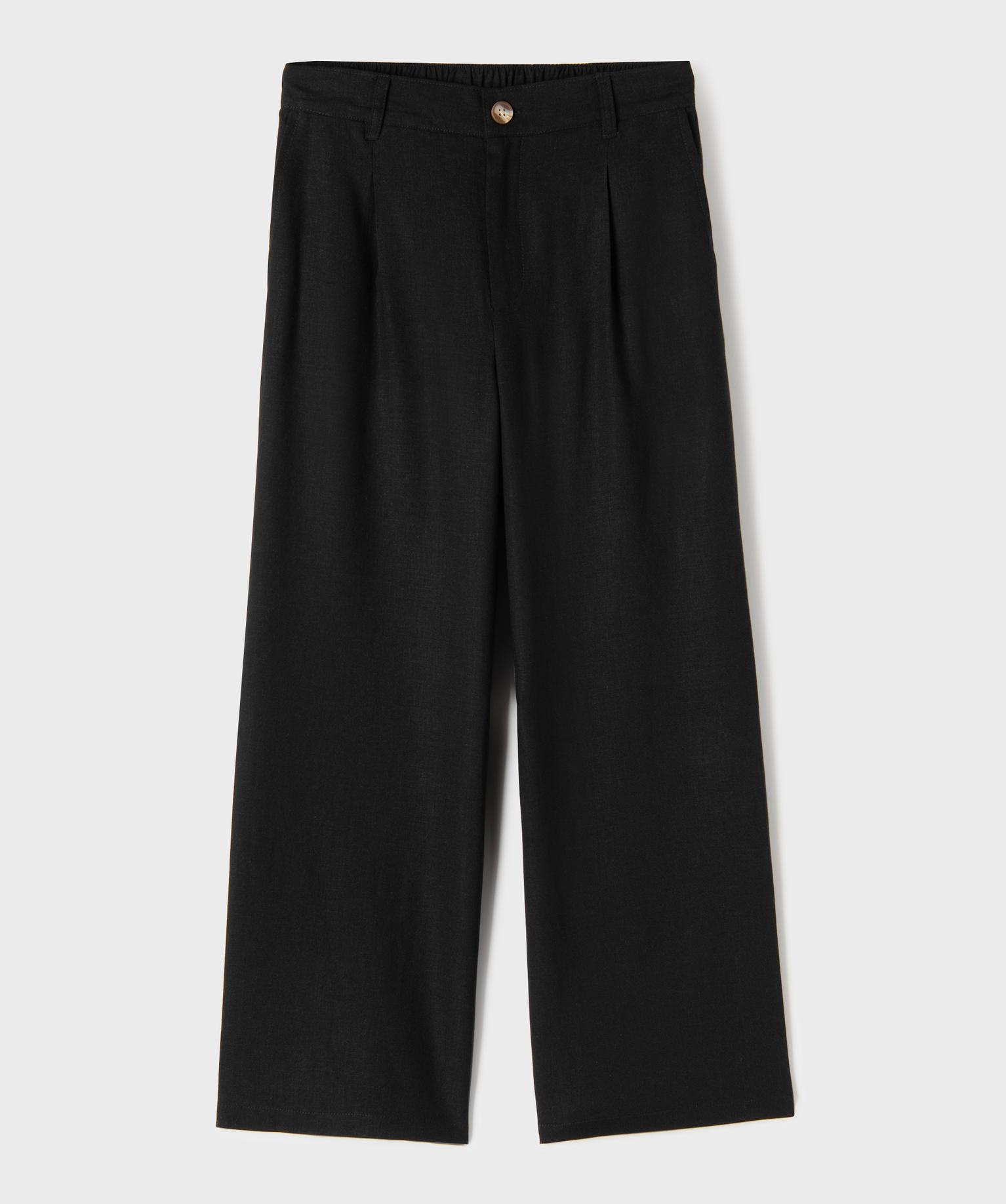 Pantalon large à pinces en lin et viscose fille noir