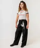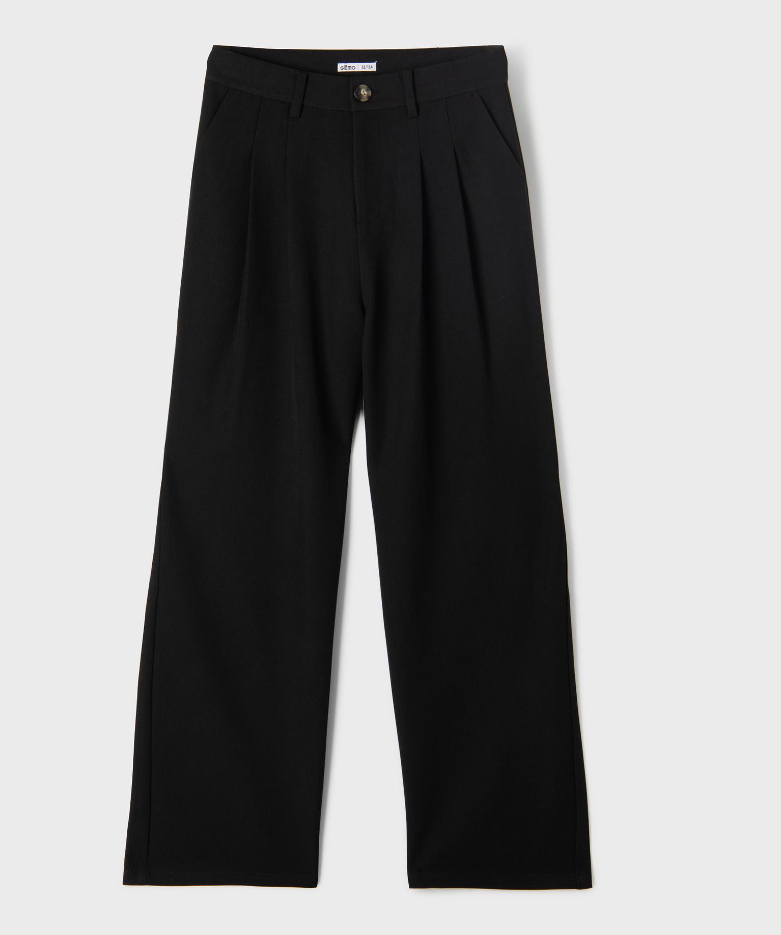 Élégant et terriblement tendance, le pantalon large à pinces est la pièce phare du dressing actuel. Sa coupe fluide et structurée offre une allure moderne et sophistiquée, tout en garantissant un confort idéal au quotidien. Facile à associer, ce pantalon pour fille se porte aussi bien avec un tee-shirt casual et des baskets pour un look décontracté, qu’avec une blouse et des derbies pour une allure plus élégante. Fermeture par zip et bouton. Passants pour ceinture. Deux poches italiennes et deux fausses poches raglan.