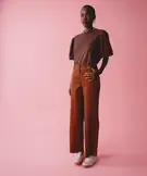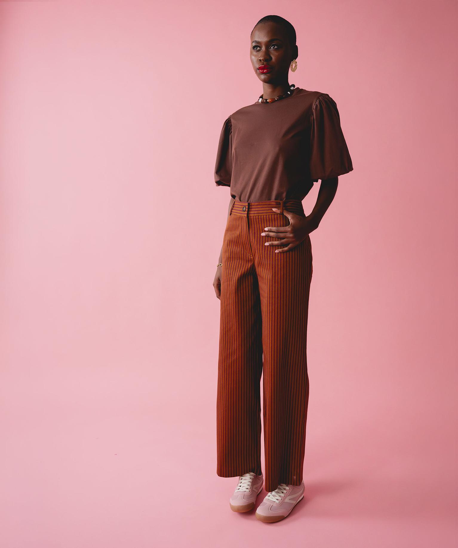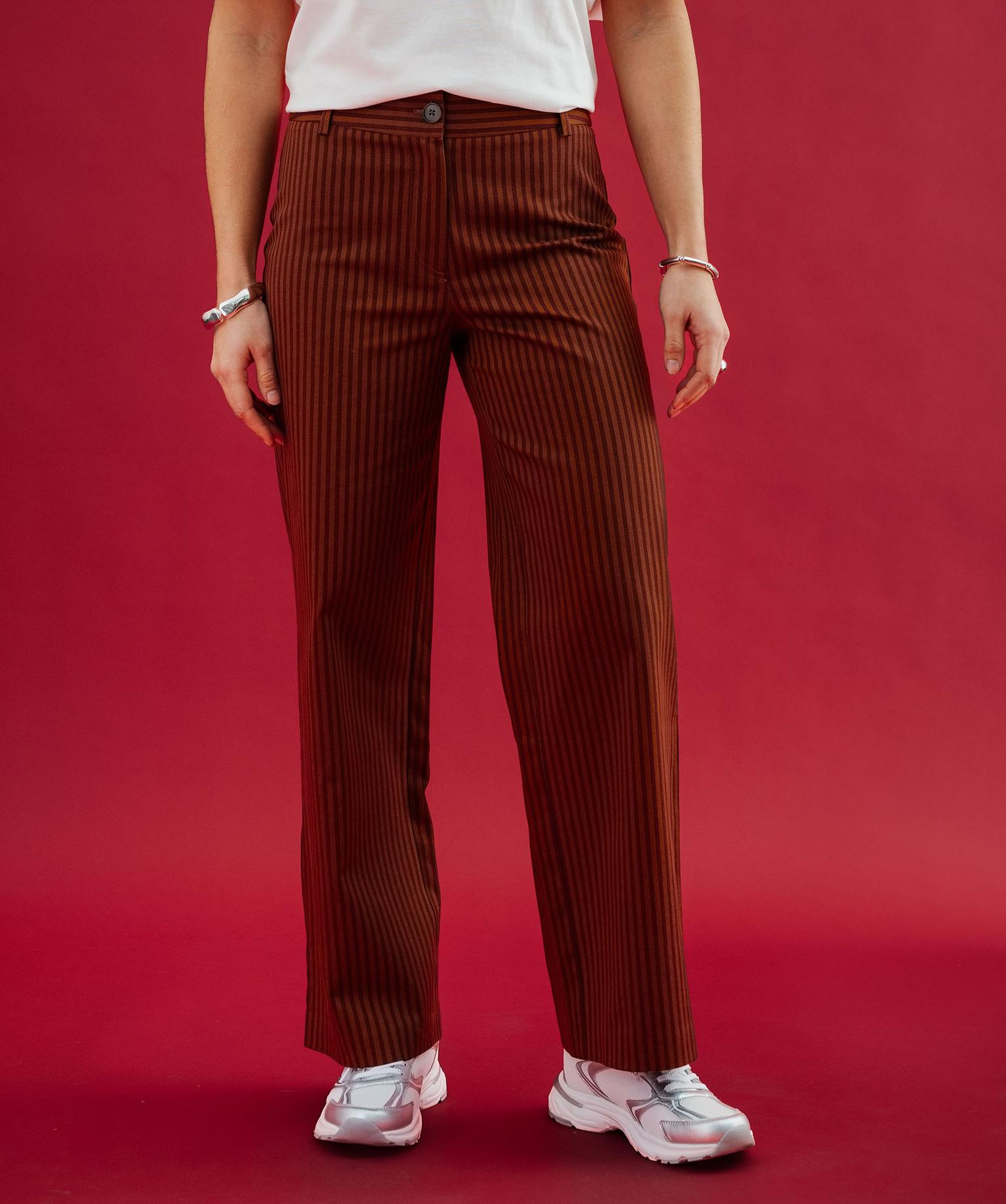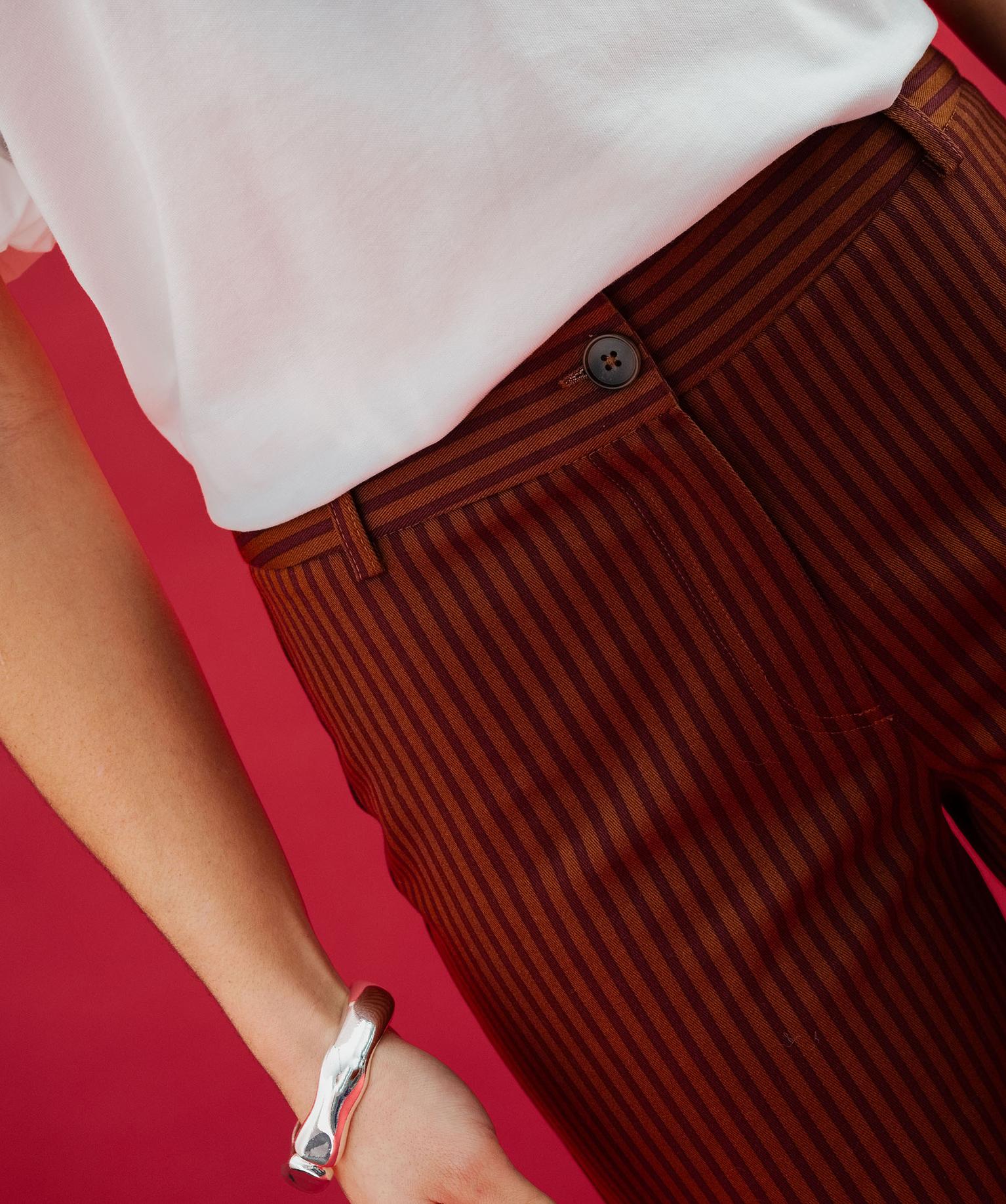 Pantalon large à rayures en coton stretch femme marron
