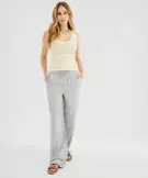 Si vous aimez les vêtements qui allient confort et sophistication sans effort, ce pantalon large femme à rayures est fait pour vous. Sa confection viscose/lin avec coupe ample et droite crée une silhouette fluide et élégante. Le motif rayé allonge la jambe et ajoute une touche classique. La taille élastiquée avec cordon coulissant assure un confort sur mesure et une aisance parfaite au quotidien. Ce pantalon des beaux jours est idéal pour composer un look casual chic, à porter avec un tee-shirt blanc et des sandales plates ou une blouse légère et des ballerines.