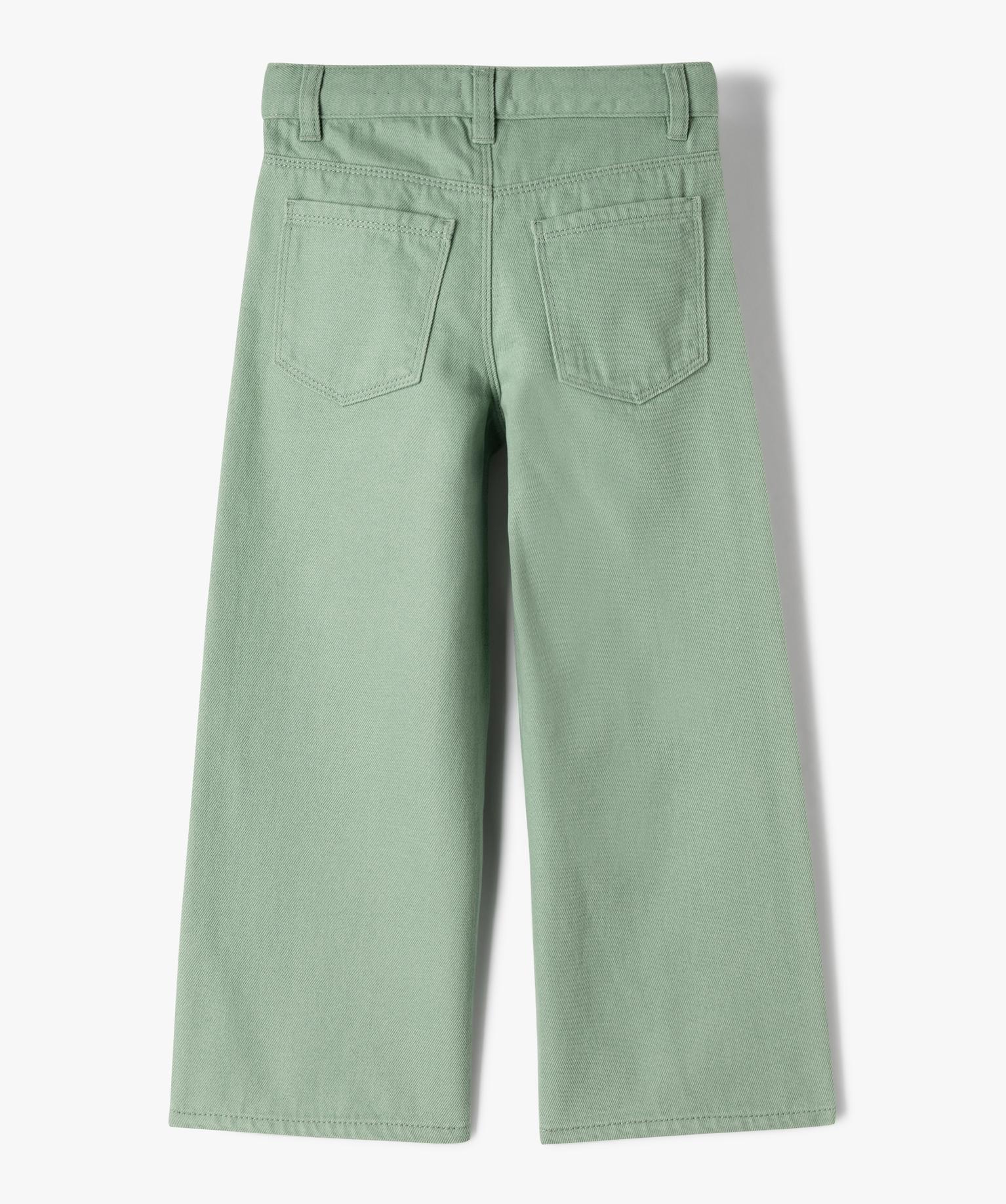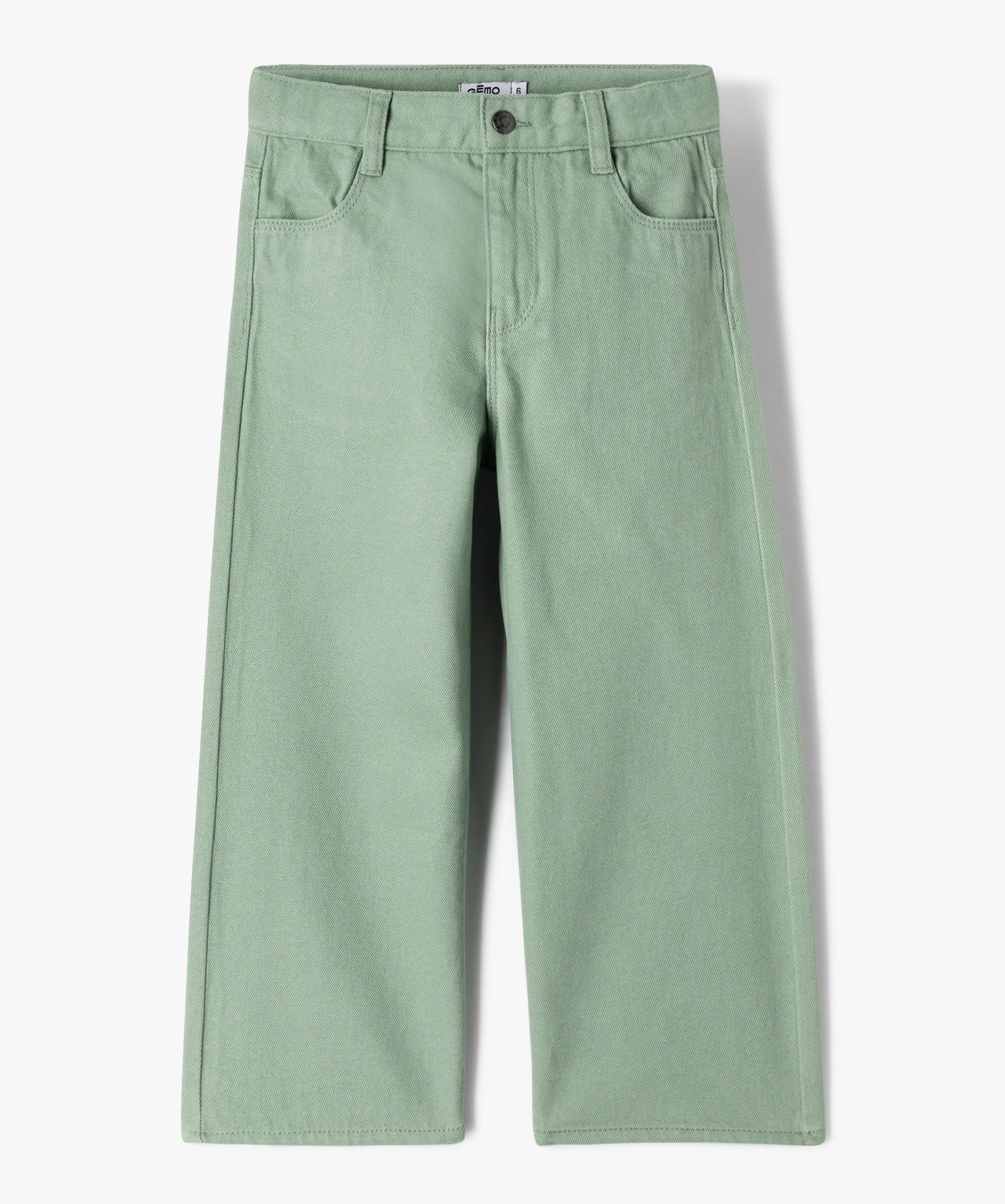 Gémo revisite le jean wide leg avec ce pantalon large en coton sergé décliné dans des couleurs pastel à croquer. Le pantalon fille présente une coupe très tendance cette saison, à combiner avec un crop top, un sweat à capuche ou une doudoune sans manches et bien sûr des baskets à plateforme ! Le pantalon possède 2 poches devant et 2 poches plaquées au dos. Il se ferme à l'aide d'un zip et d'un bouton. Sa taille s'adapte à la morphologie de votre enfant grâce à un système de réglage élastique intérieur.