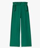 Pantalon large avec boucles à la ceinture femme vert