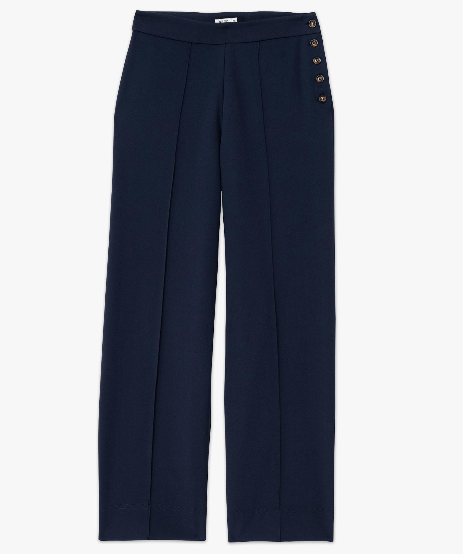 Pantalon large avec fermeture boutonnée sur le côté femme bleu
