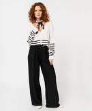 Must-have de la saison, le pantalon large assure une silhouette très élégantes en toutes circonstances. Ce pantalon femme, confectionné dans une matière fluide, souligne élégamment la silhouette grâce à sa taille haute parfaitement ajustée et ses jambes extra larges. La coupe est accentuée par des pinces sur l’arrière, des plis sur l’avant et une ceinture cousue fermée par une double boucle. Il se ferme facilement grâce à un zip sous patte. Ce pantalon fluide se porte avec une chemise et des escarpins à talon pour une allure élégante ou avec un tee-shirt et des baskets pour casser les codes.
