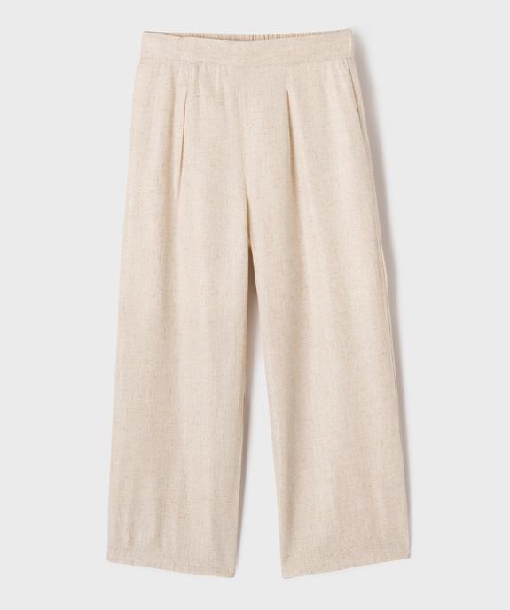 Pantalon large élégant en lin et viscose pailleté fille blanc chine