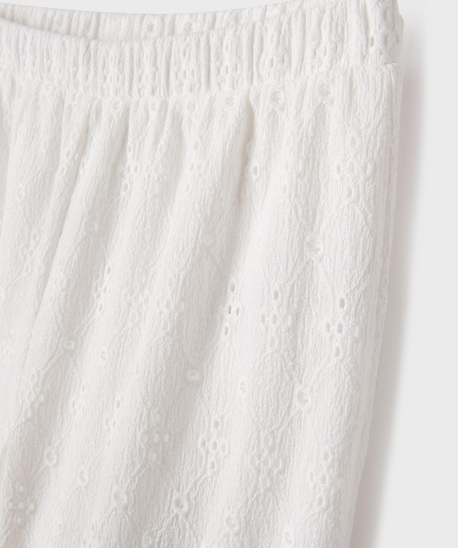 Pantalon large en broderie anglaise avec taille élastique fille blanc