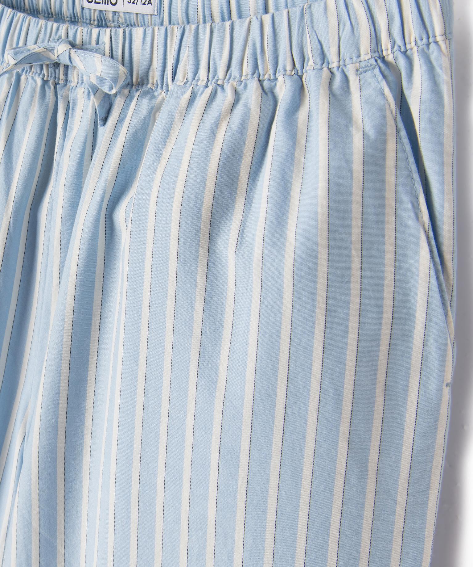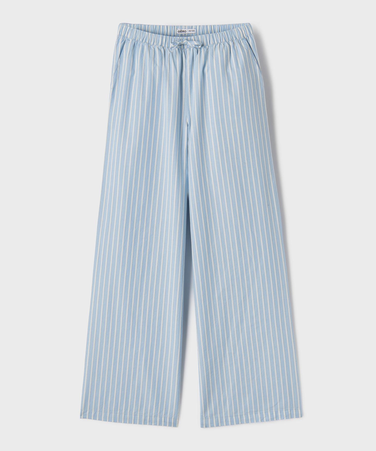 Pantalon large en coton rayé à taille élastiquée fille bleu