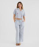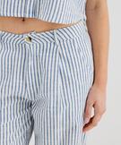 Pantalon large en coton rayé et texturé femme bleu