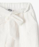 Offrez à votre fillette une allure romantique avec ce ravissant pantalon en broderie anglaise ! Un pantalon large fabriqué dans une dentelle extensible, avec une doublure short et une taille élastiquée réglable pour le confort de votre enfant. Le pantalon possède 2 liens à nouer à l’avant. Girly et confortable, ce pantalon pour fille se marie aussi bien avec un tee-shirt uni et des tennis en toile pour un look décontracté, qu'avec la blouse assortie et des sandales élégantes pour une tenue de cérémonie par exemple.