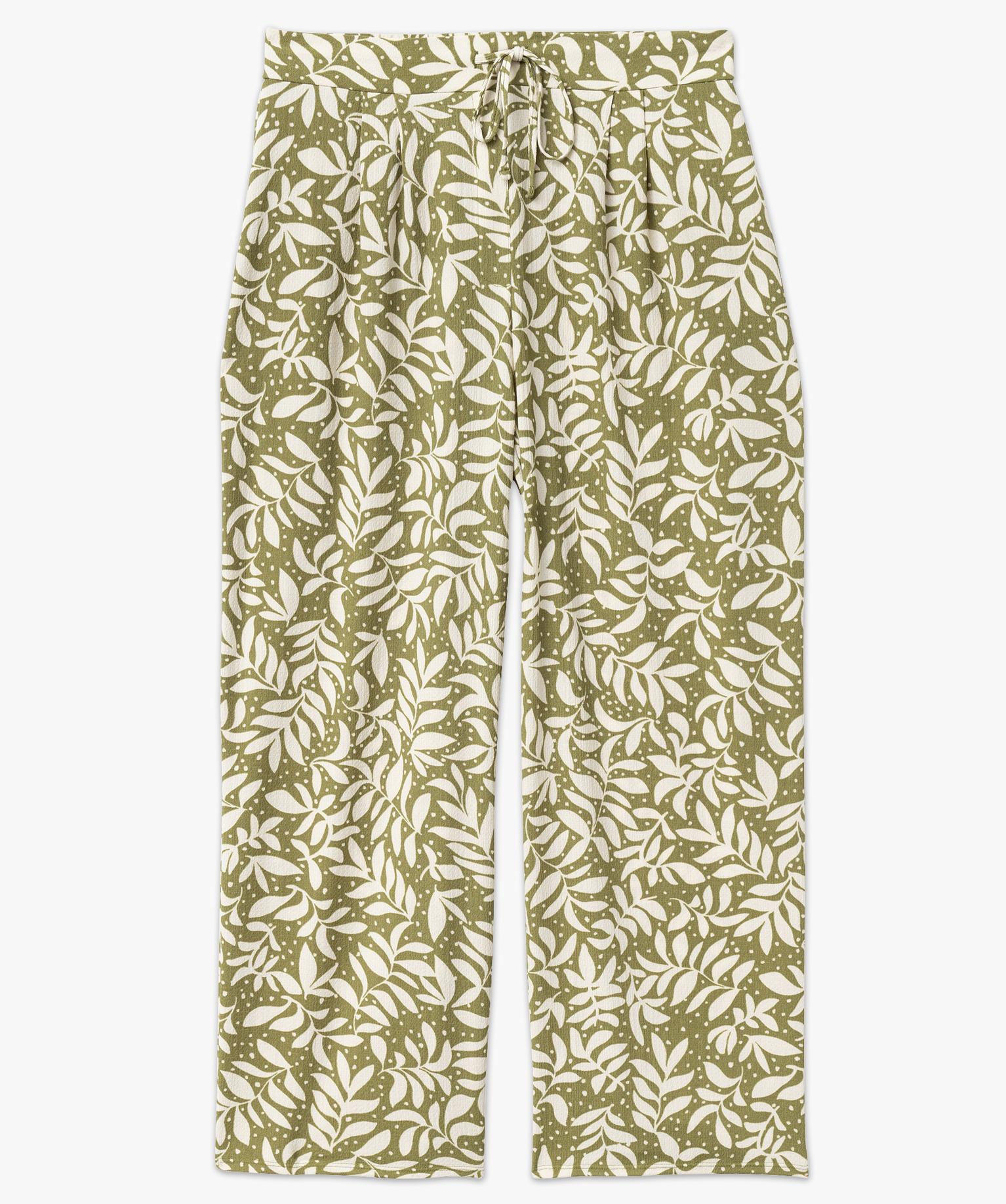 Pantalon large en maille froissée imprimée et extensible femme grande taille vert clair