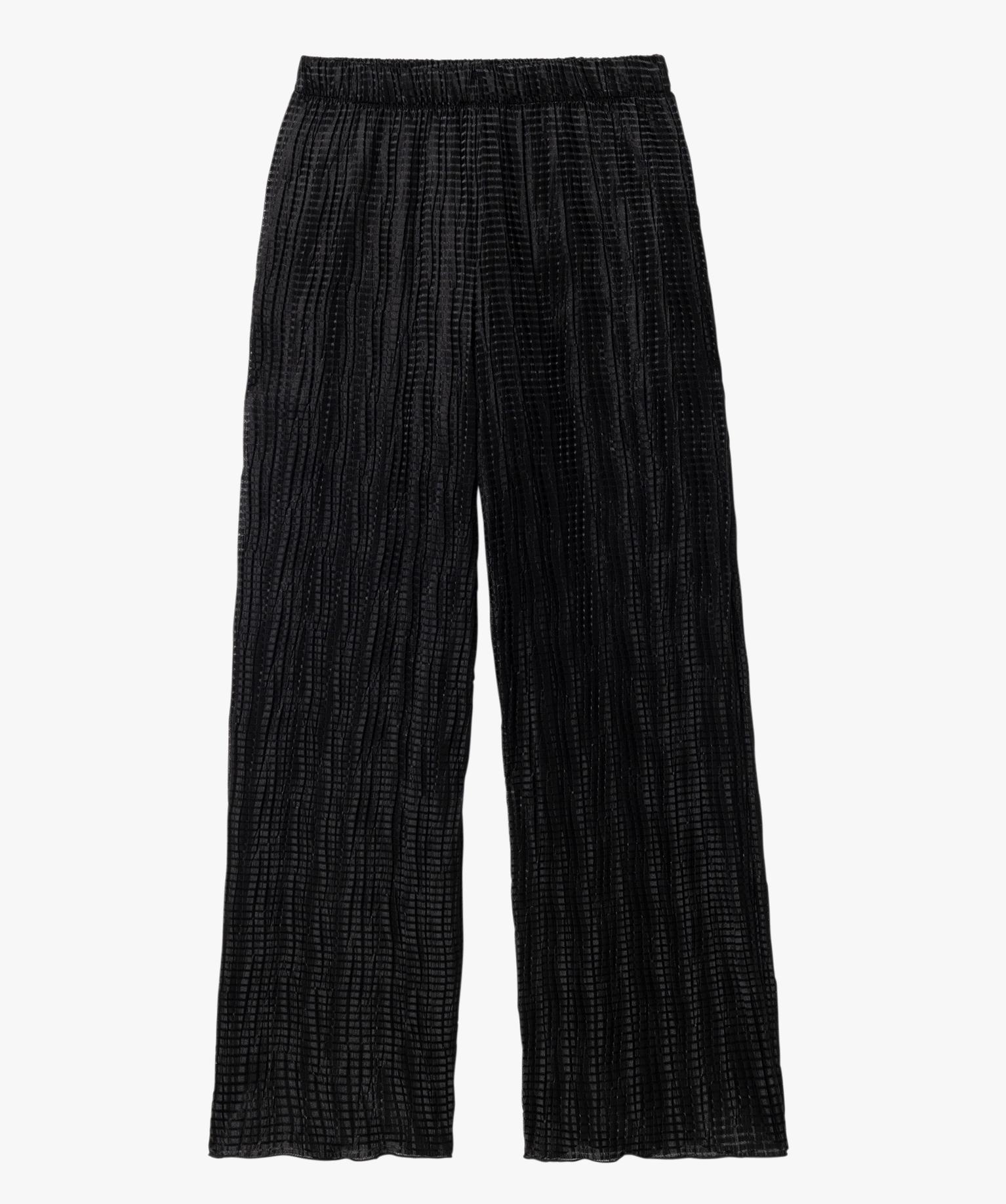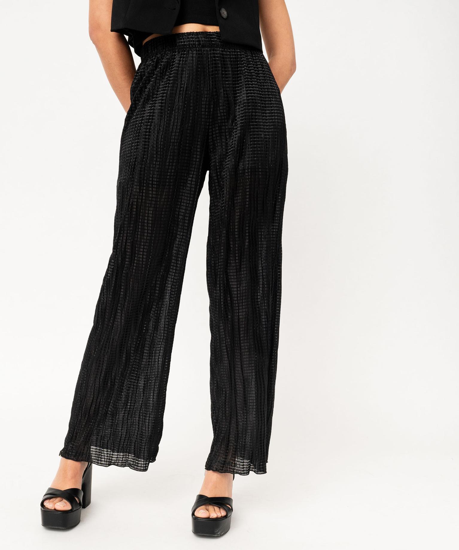 Ce pantalon large apportera une touche scintillante dans votre dressing. Confectionnée dans une sublime maille gaufrée aux reflets irisés, ce pantalon pour femme joue avec la transparence du tissu. Pas d'inquiétude côté discrétion : il possède une doublure short. Il est également équipé d'une taille élastiquée pour un maximum de confort. Ce pantalon fluide est à oser le jour avec un tee-shirt blanc classique et des tennis en toile, et à porter comme pantalon de soirée avec la blouse assortie ou un top en satin. Finition ourlet surpiqué dans le bas.