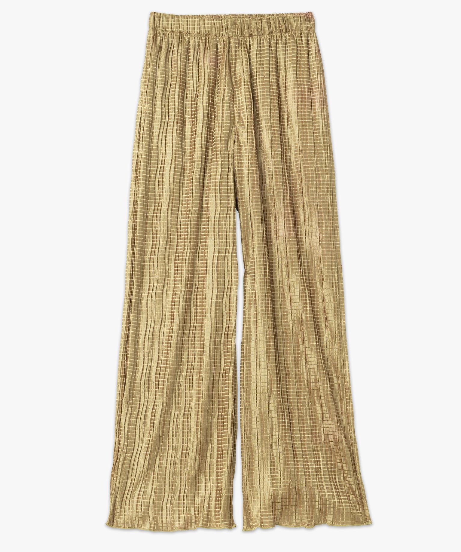 Ce pantalon large apportera une touche scintillante dans votre dressing. Confectionnée dans une sublime maille gaufrée aux reflets irisés, ce pantalon pour femme joue avec la transparence du tissu. Pas d'inquiétude côté discrétion : il possède une doublure short. Il est également équipé d'une taille élastiquée pour un maximum de confort. Ce pantalon fluide est à oser le jour avec un tee-shirt blanc classique et des tennis en toile, et à porter comme pantalon de soirée avec la blouse assortie ou un top en satin. Finition ourlet surpiqué dans le bas.