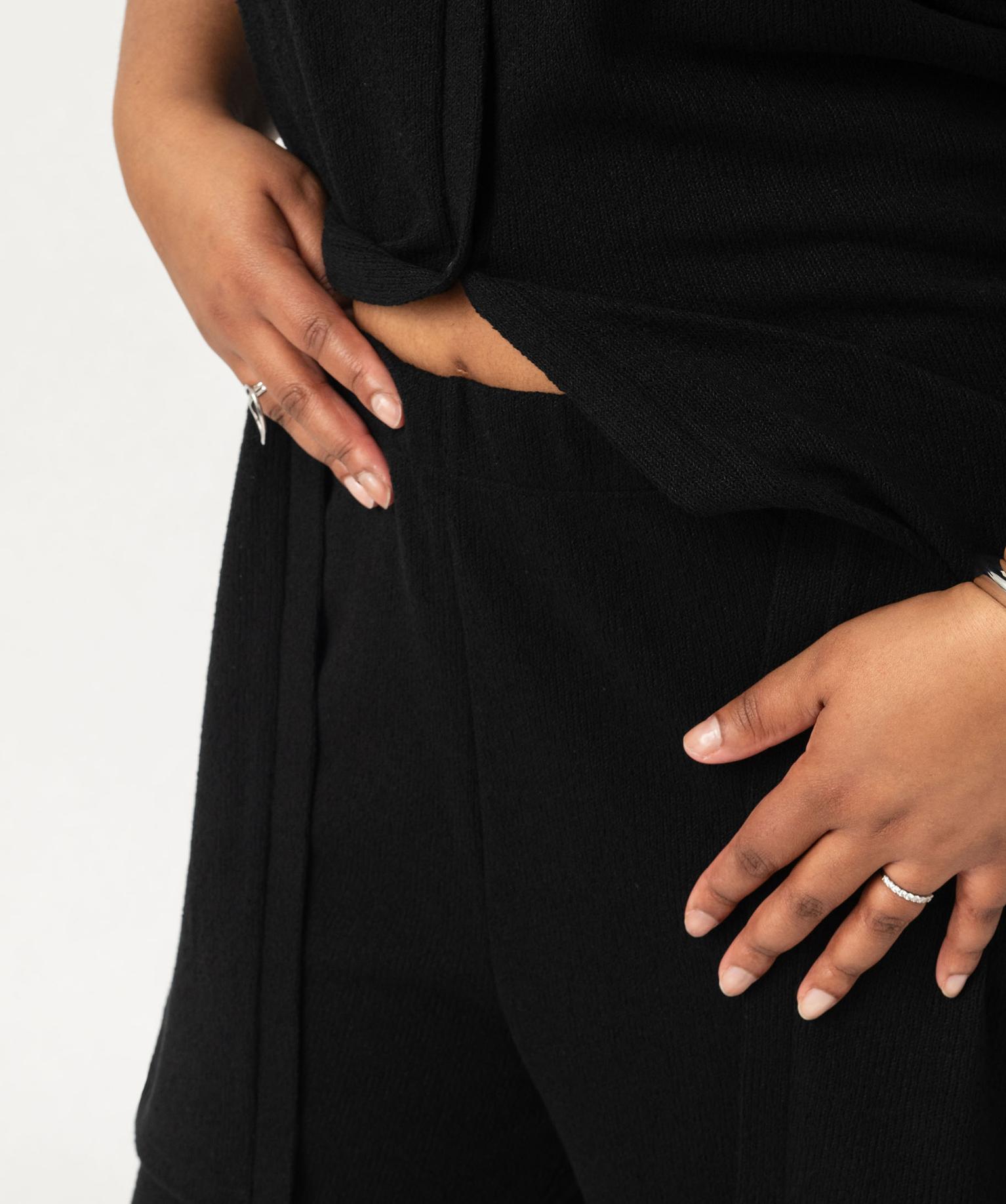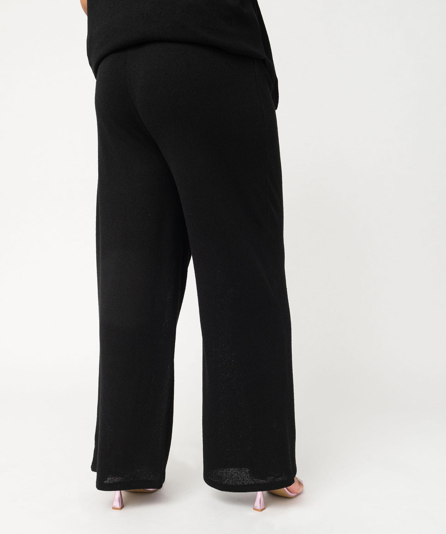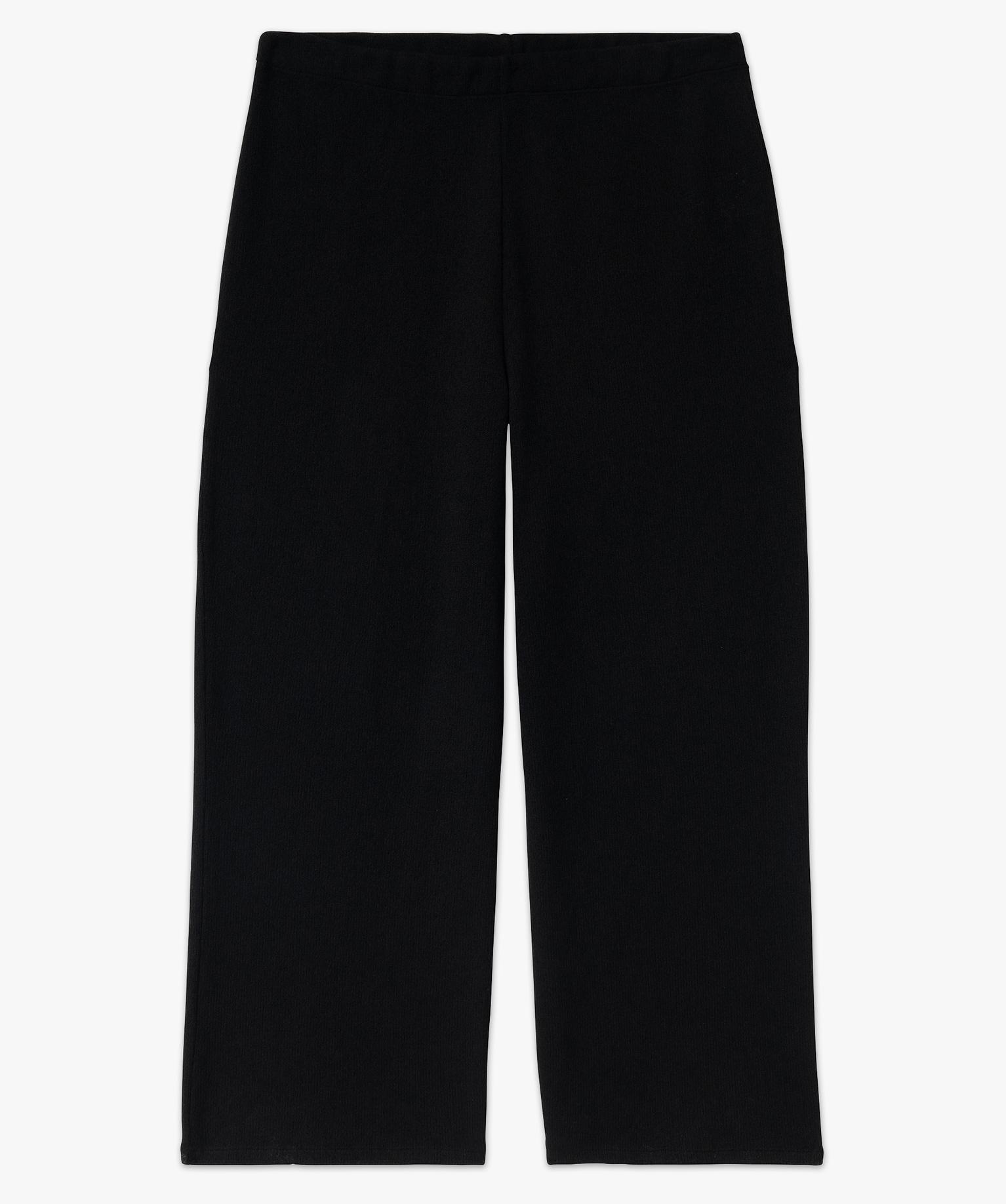 Pantalon large en maille souple avec taille élastiquée femme noir