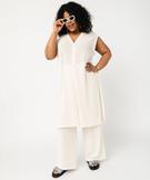 Pantalon large en maille souple avec taille élastiquée femme blanc chine