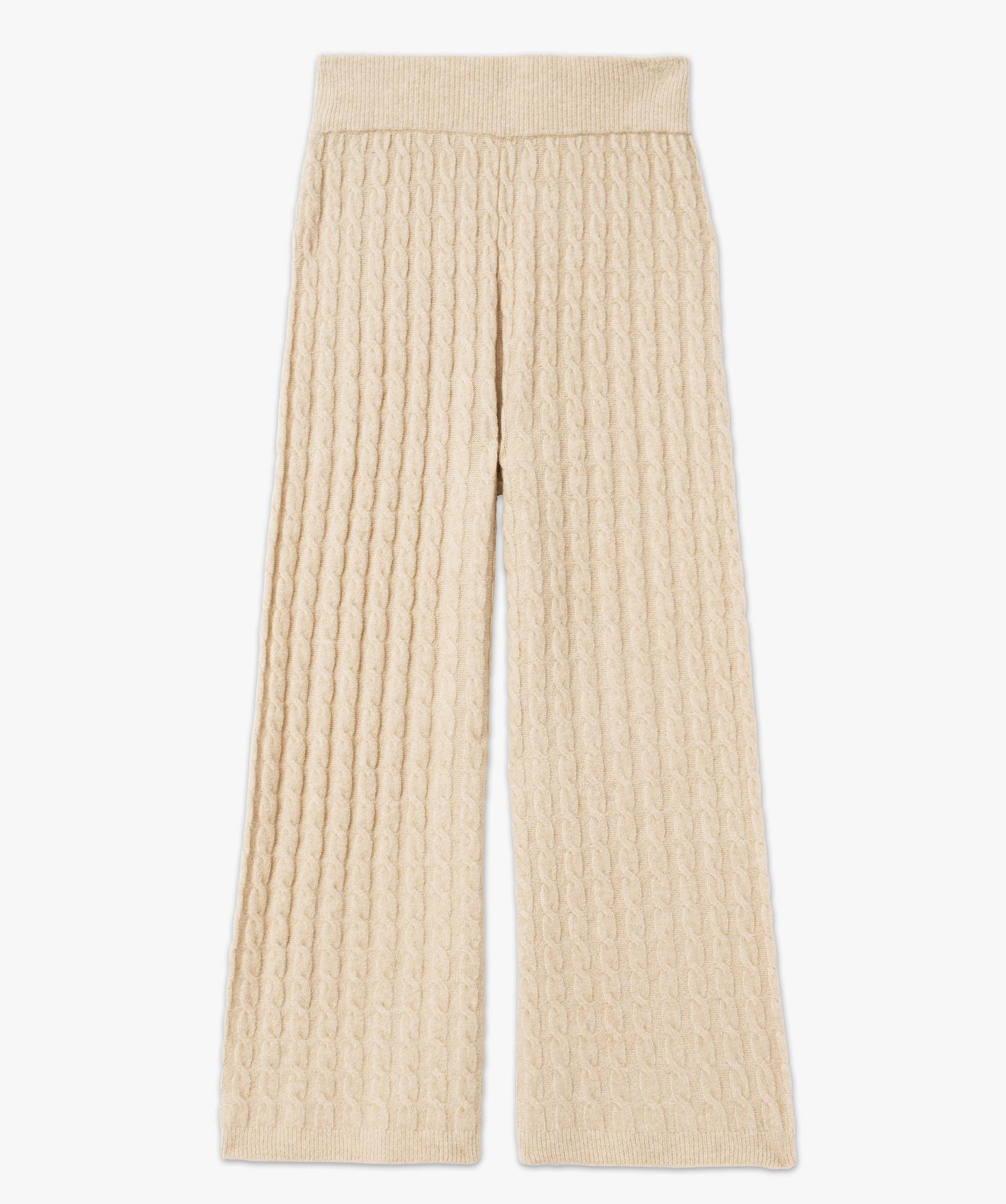 Ce pantalon large en maille torsadée vous promet un maximum de style ! Un pantalon femme grande taille (du 46/48 au 54/56) très élégant et facile à enfiler grâce à sa large ceinture élastique. Tricoté dans une maille douce contenant de la laine, il vous offre un confort unique tout au long de la saison hivernale. Associé à un pull col roulé et une paire de boots, il vous assure une allure irrésistible !
