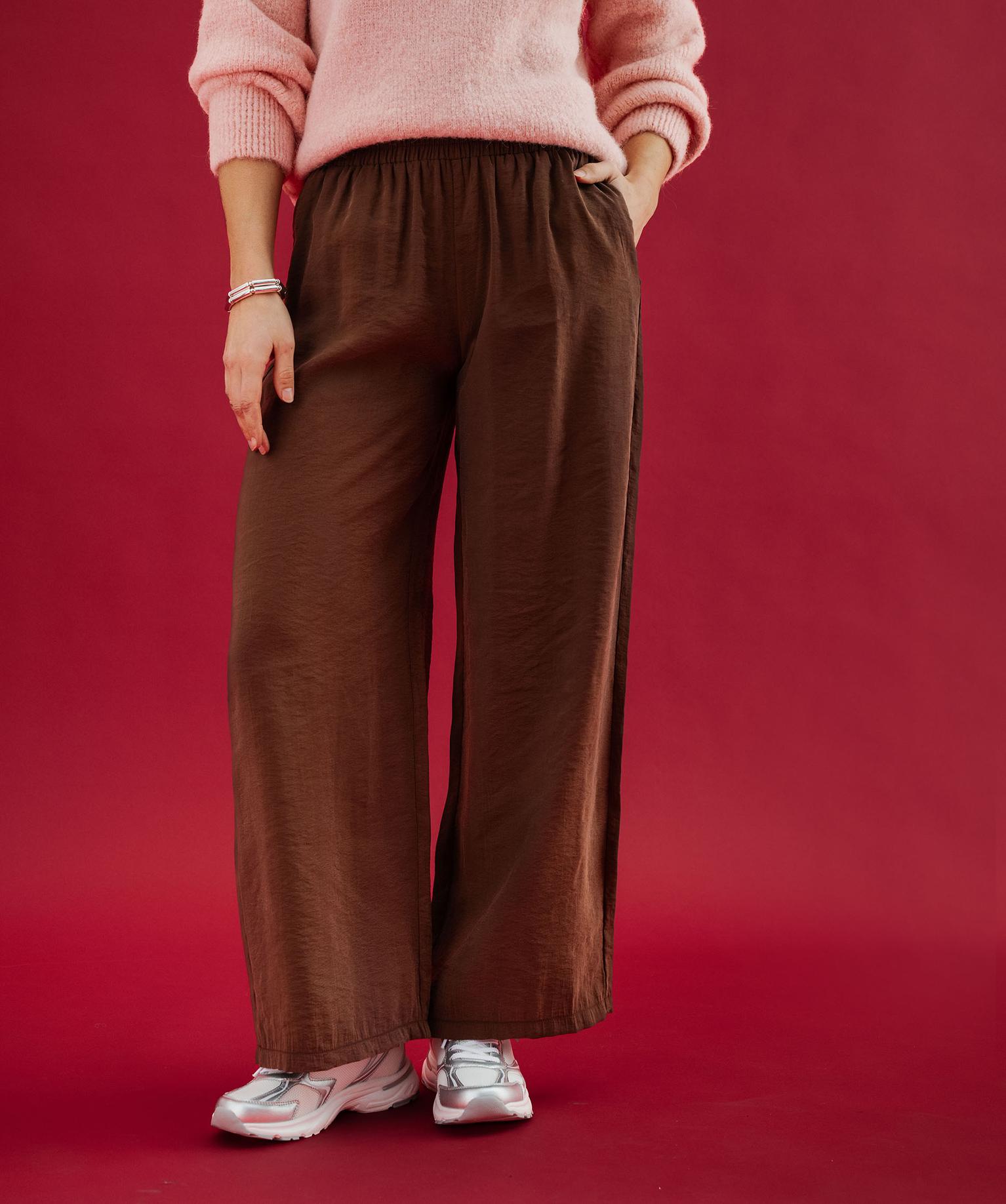 Pantalon large en matière fluide femme marron fonce