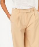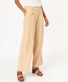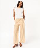 Pantalon large en toile extensible femme beige