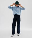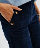Pantalon large en velours côtelé à pont décoratif femme[MISSING] bleu marine