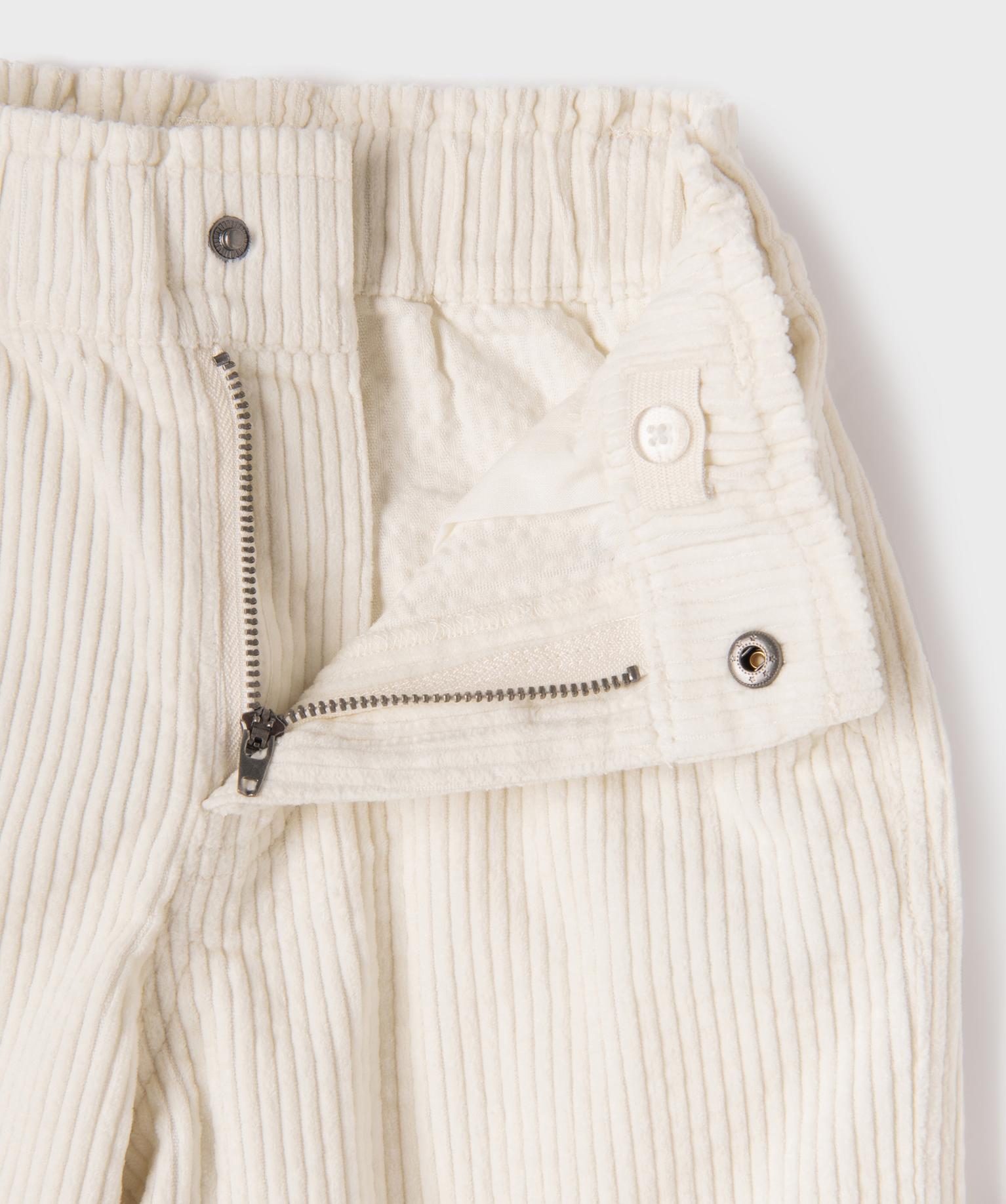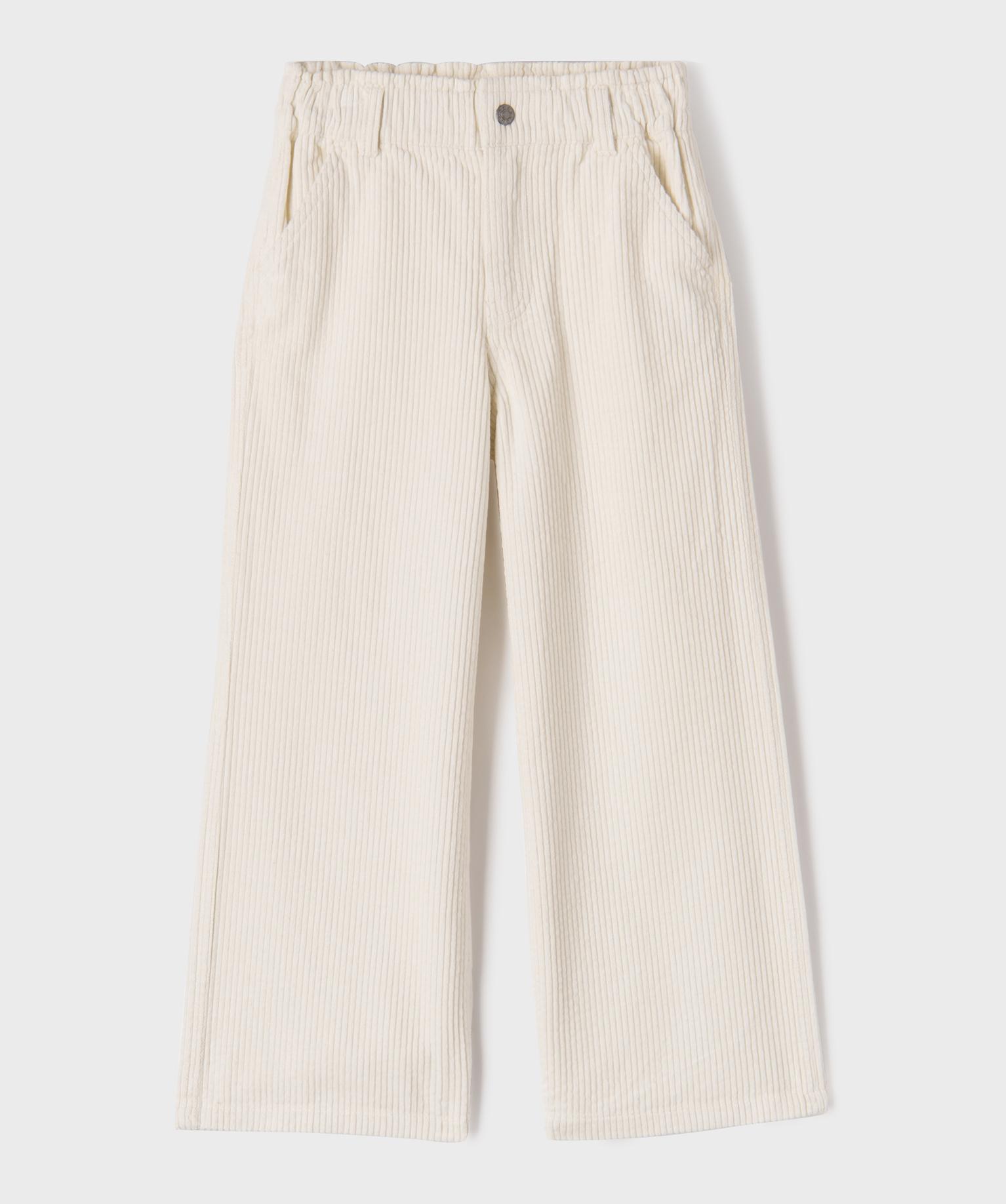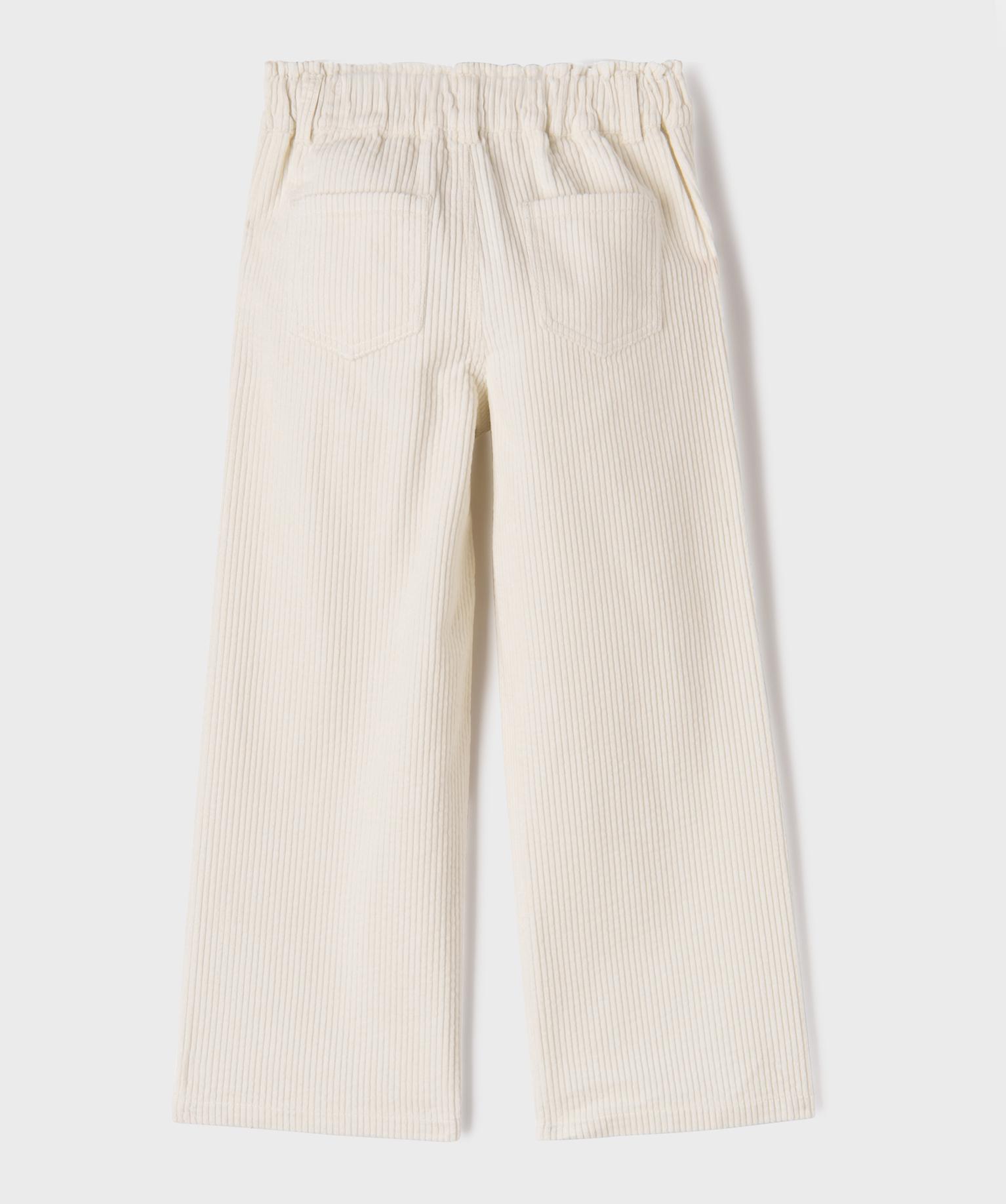 Pantalon large en velours côtelée à taille élastique réglable fille ecru