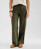 Pantalon large en viscose et lin à taille élastiquée femme kaki