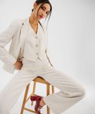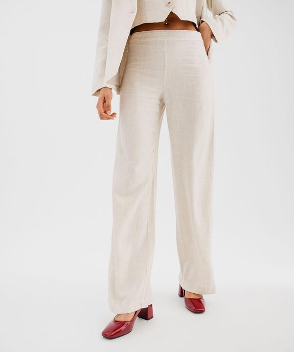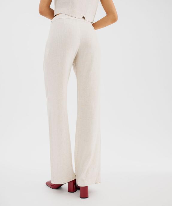 Ajoutez sans attendre ce pantalon large en viscose et lin dans votre dressing estival. Un pantalon femme incrusté de discrets fils métallisés offrant un effet irisé, parfait pour tous les looks casual chics. Sa coupe fluide et ample offre une sensation de légèreté tandis que la combinaison de viscose douce et de lin respirant assure confort et fraîcheur tout au long de la journée. Doté d’une ceinture plate, il met la silhouette en valeur et se ferme à l’aide d’un zip invisible sur le côté.