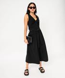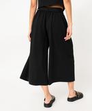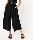 Retrouvez l'esprit chic et sophistiquée de la jupe-culotte dans une version moderne et tendance ! Ce pantalon femme court présente une grande ampleur au niveau de la jambe, mais un tomber impeccable à la taille grâce à un jeu de plis, de pinces, un dos élastiquée et une ceinture à nouer sous passants. Le pantacourt est confectionné dans une maille assez lourde mais souple et extensible, pour un tomber fluide et toujours élégant. Son aspect est subtilement texturé comme du twill. Le pantalon est équipé de 2 poches italiennes. Pour une silhouette féminine et tendance, portez ce pantalon avec des sandales à talon et un gilet sans manches.