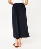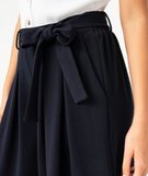Retrouvez l'esprit chic et sophistiquée de la jupe-culotte dans une version moderne et tendance ! Ce pantalon femme court présente une grande ampleur au niveau de la jambe, mais un tomber impeccable à la taille grâce à un jeu de plis, de pinces, un dos élastiquée et une ceinture à nouer sous passants. Le pantacourt est confectionné dans une maille assez lourde mais souple et extensible, pour un tomber fluide et toujours élégant. Son aspect est subtilement texturé comme du twill. Le pantalon est équipé de 2 poches italiennes. Pour une silhouette féminine et tendance, portez ce pantalon avec des sandales à talon et un gilet sans manches.