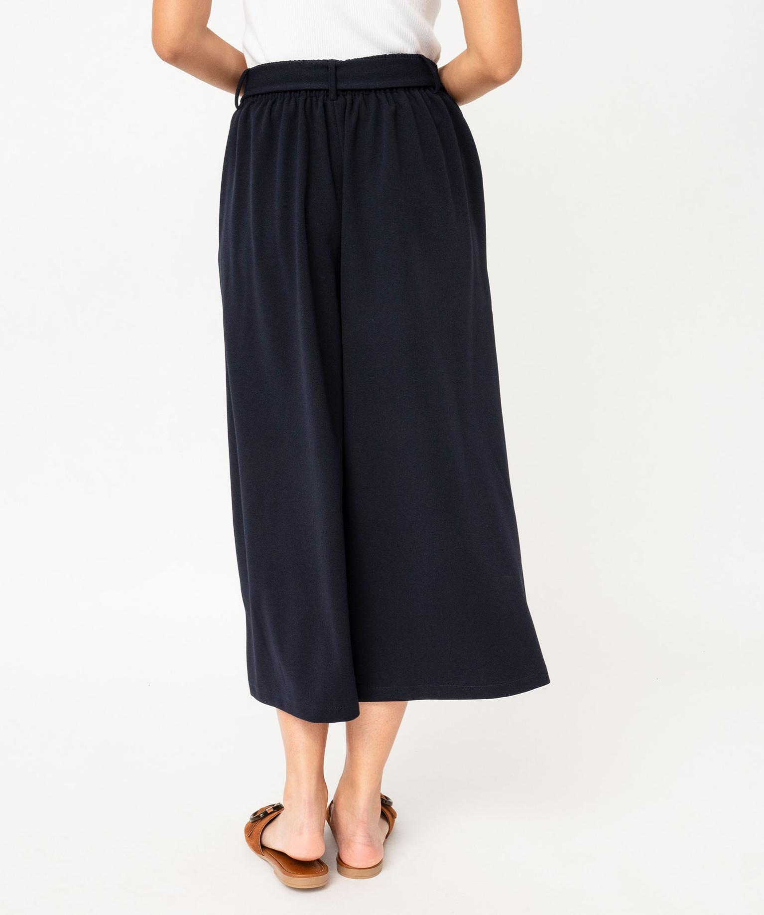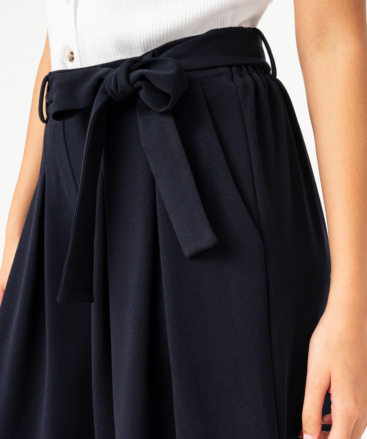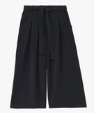 Retrouvez l'esprit chic et sophistiquée de la jupe-culotte dans une version moderne et tendance ! Ce pantalon femme court présente une grande ampleur au niveau de la jambe, mais un tomber impeccable à la taille grâce à un jeu de plis, de pinces, un dos élastiquée et une ceinture à nouer sous passants. Le pantacourt est confectionné dans une maille assez lourde mais souple et extensible, pour un tomber fluide et toujours élégant. Son aspect est subtilement texturé comme du twill. Le pantalon est équipé de 2 poches italiennes. Pour une silhouette féminine et tendance, portez ce pantalon avec des sandales à talon et un gilet sans manches.