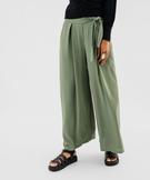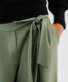 Pantalon large et fluide à taille élastiquée et liens à nouer femme vert clair