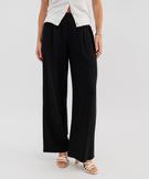 Pantalon large et fluide à taille haute femme noir