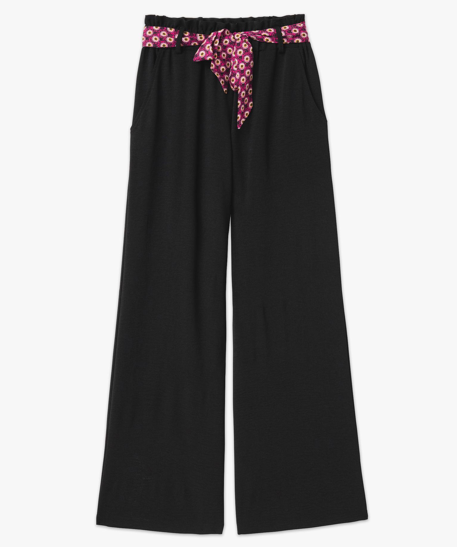 Pantalon large et fluide avec ceinture à motifs femme[MISSING] noir