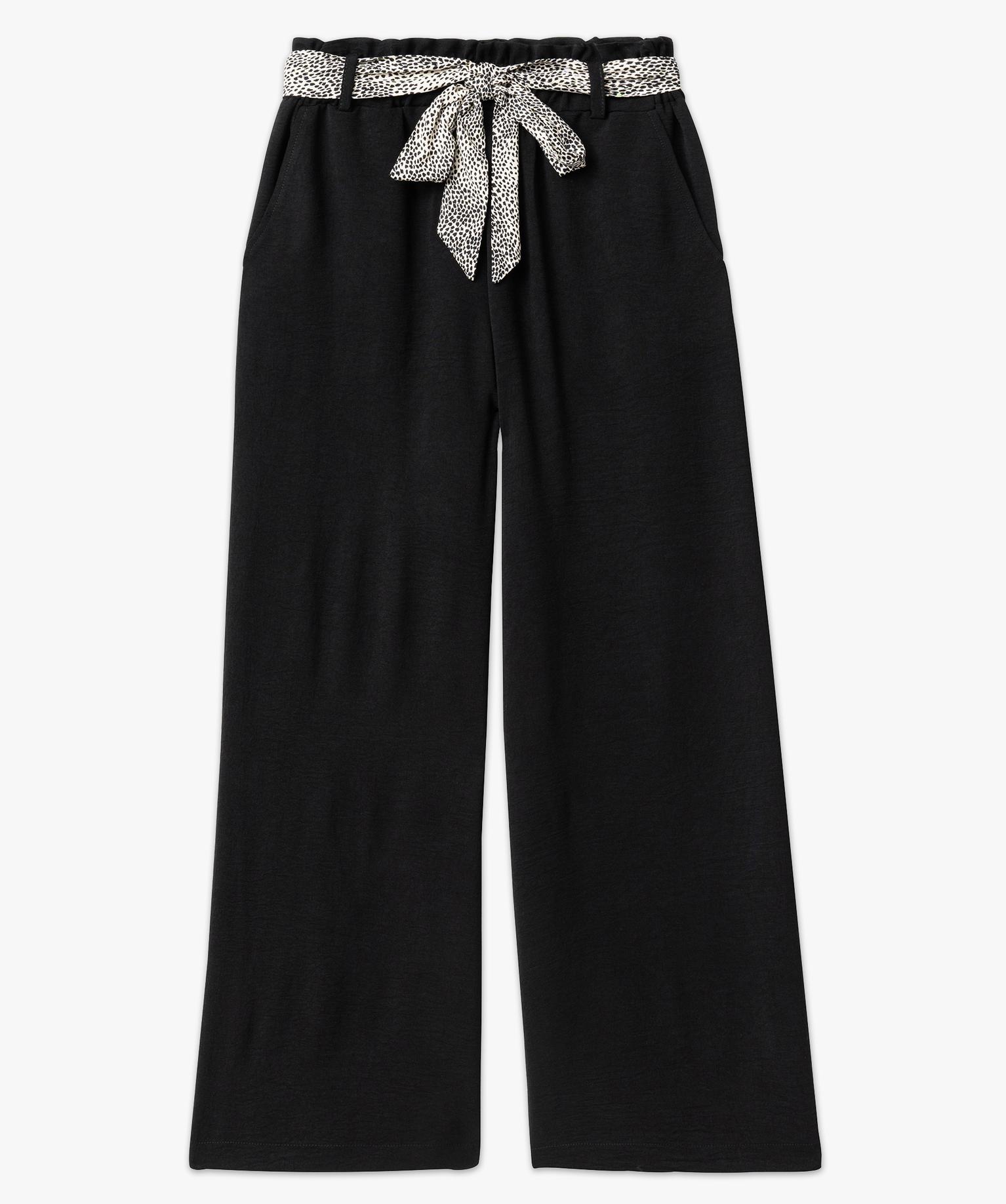 Pantalon large et fluide avec ceinture à motifs femme[MISSING] noir