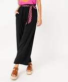 Pantalon large et fluide avec ceinture à motifs femme noir