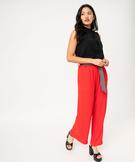 Pantalon large et fluide avec ceinture à motifs femme rouge