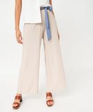 Pantalon large et fluide avec ceinture à motifs femme beige