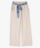 Pantalon ample en crêpe fluide uni et subtilement texturé. Le pantalon femme est monté sur une taille élastiquée et froncée, sublimée par une ceinture à nouer ornée de motifs. La ceinture sous passants est amovible : vous pouvez facilement en changer pour donner à votre pantalon un tout autre style. Taille haute, 2 poches italiennes.