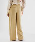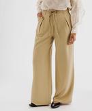 Pantalon large et fluide avec liens à nouer femme beige fonce