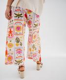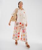 Pantalon large et fluide en gaze de coton imprimée femme grande taille blanc chine