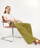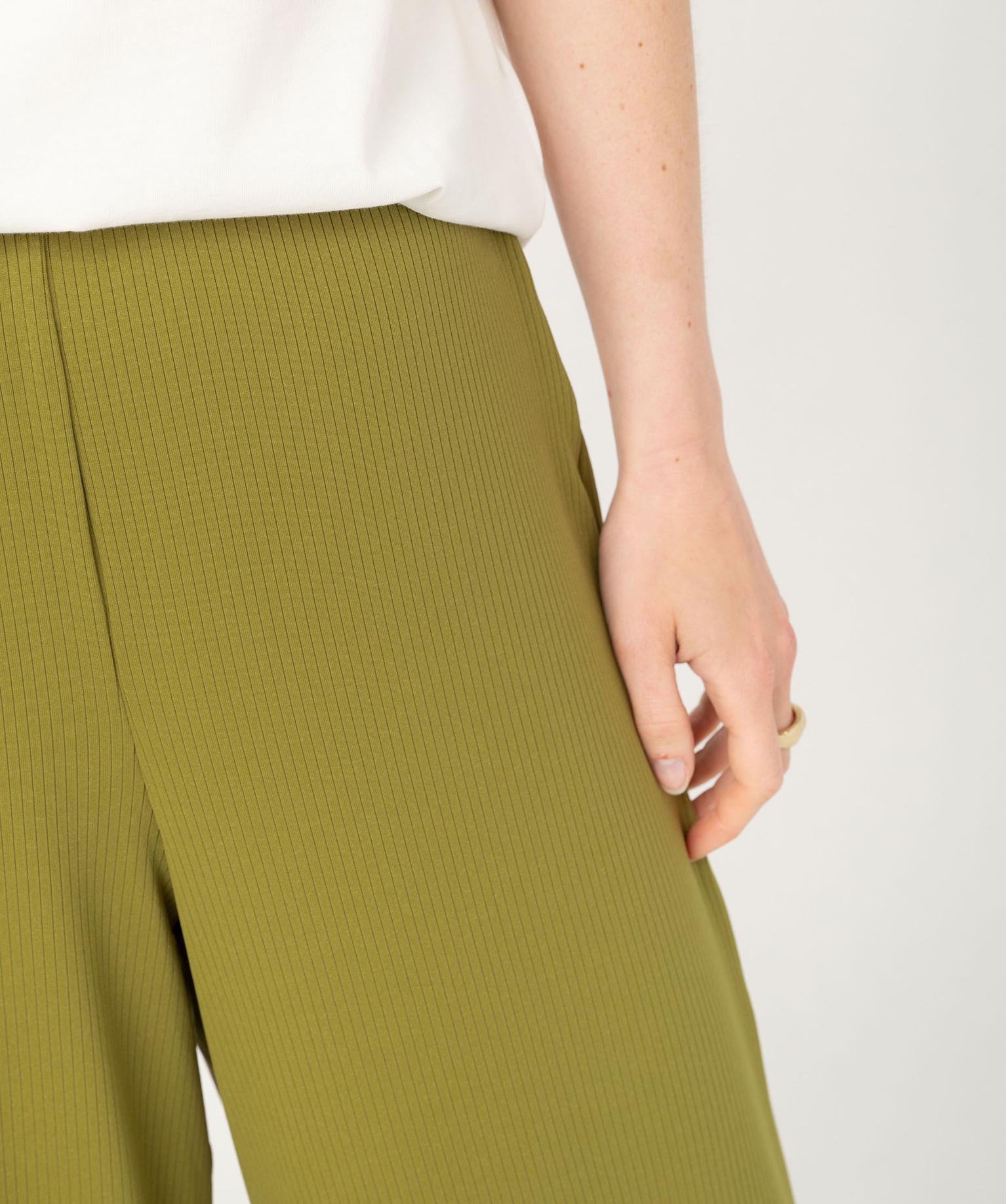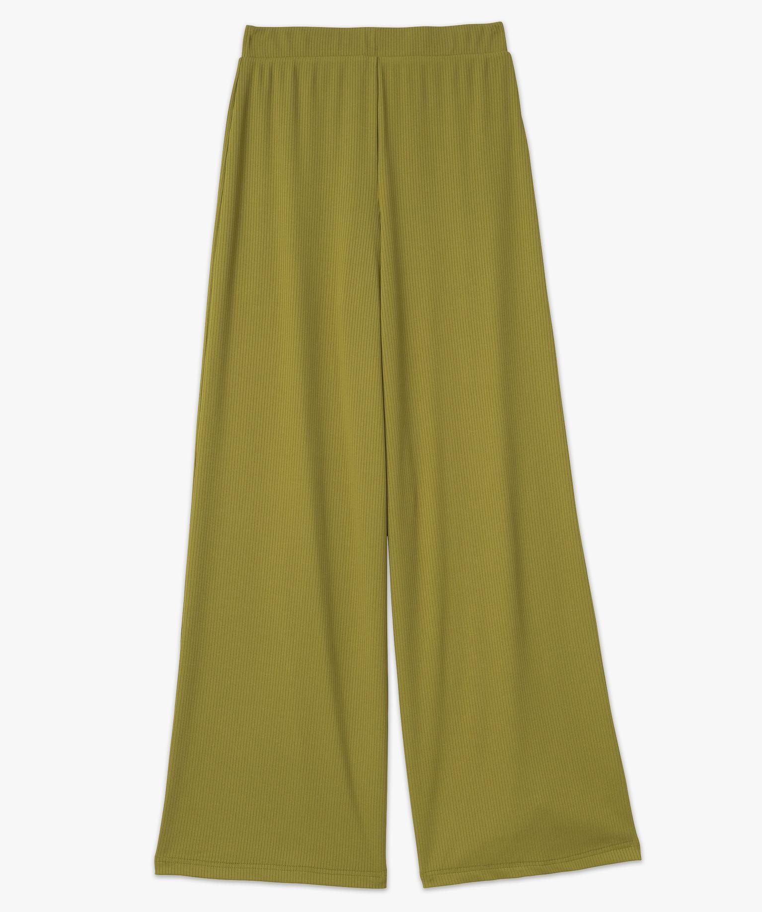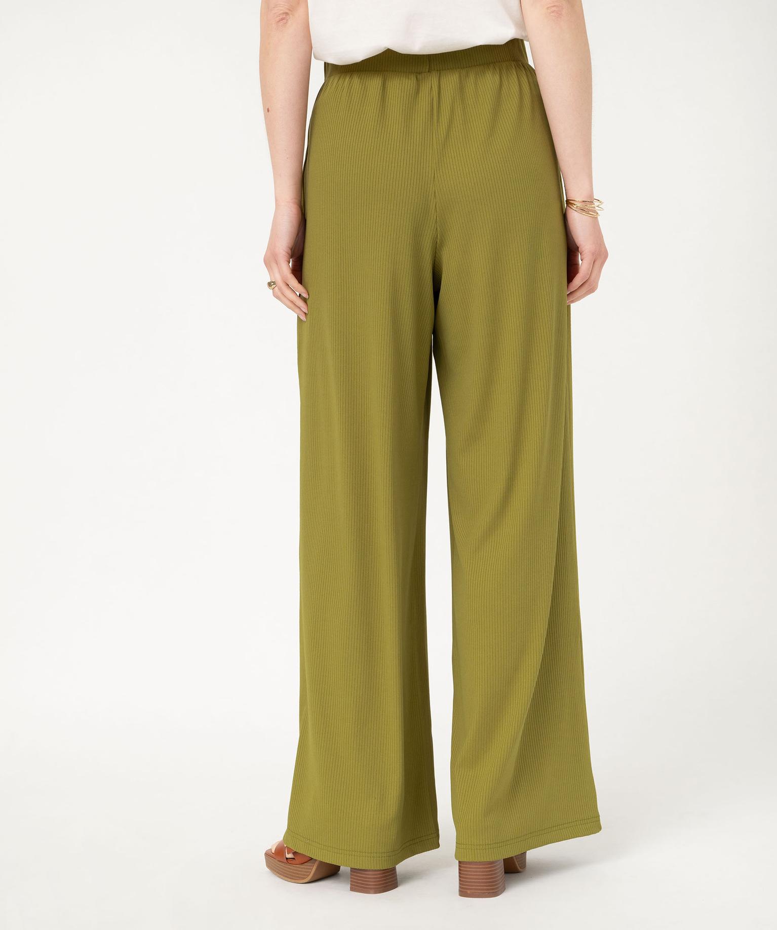 Pantalon large et fluide en maille côtelée femme vert
