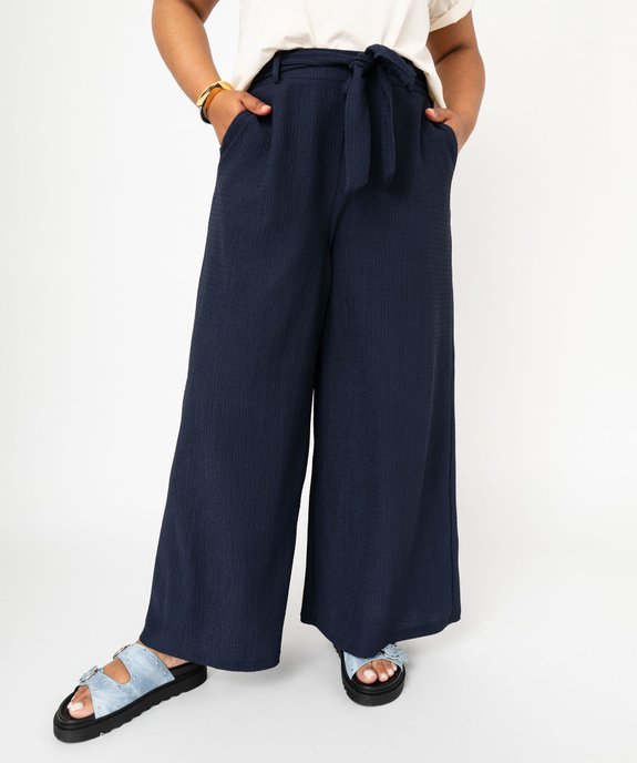 Pantalon large et fluide en matière froissé femme grande taille marine