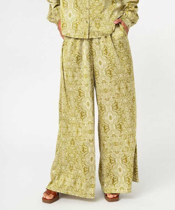 Ce pantalon femme à motifs en crêpe de satin subtilement froissé est à la fois féminin et polyvalent. Vous pouvez le porter de manière décontractée façon loungewear ou élégante avec des sandales à talon haut et un joli top. La taille élastiquée est super confortable et s’adapte facilement à votre morphologie. Ce pantalon large est idéal pour les beaux jours grâce à sa fluidité et sa légèreté. Il comporte également deux poches dissimulées dans les coutures latérales.