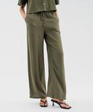 Pantalon large et fluide en viscose froissée femme kaki fonce