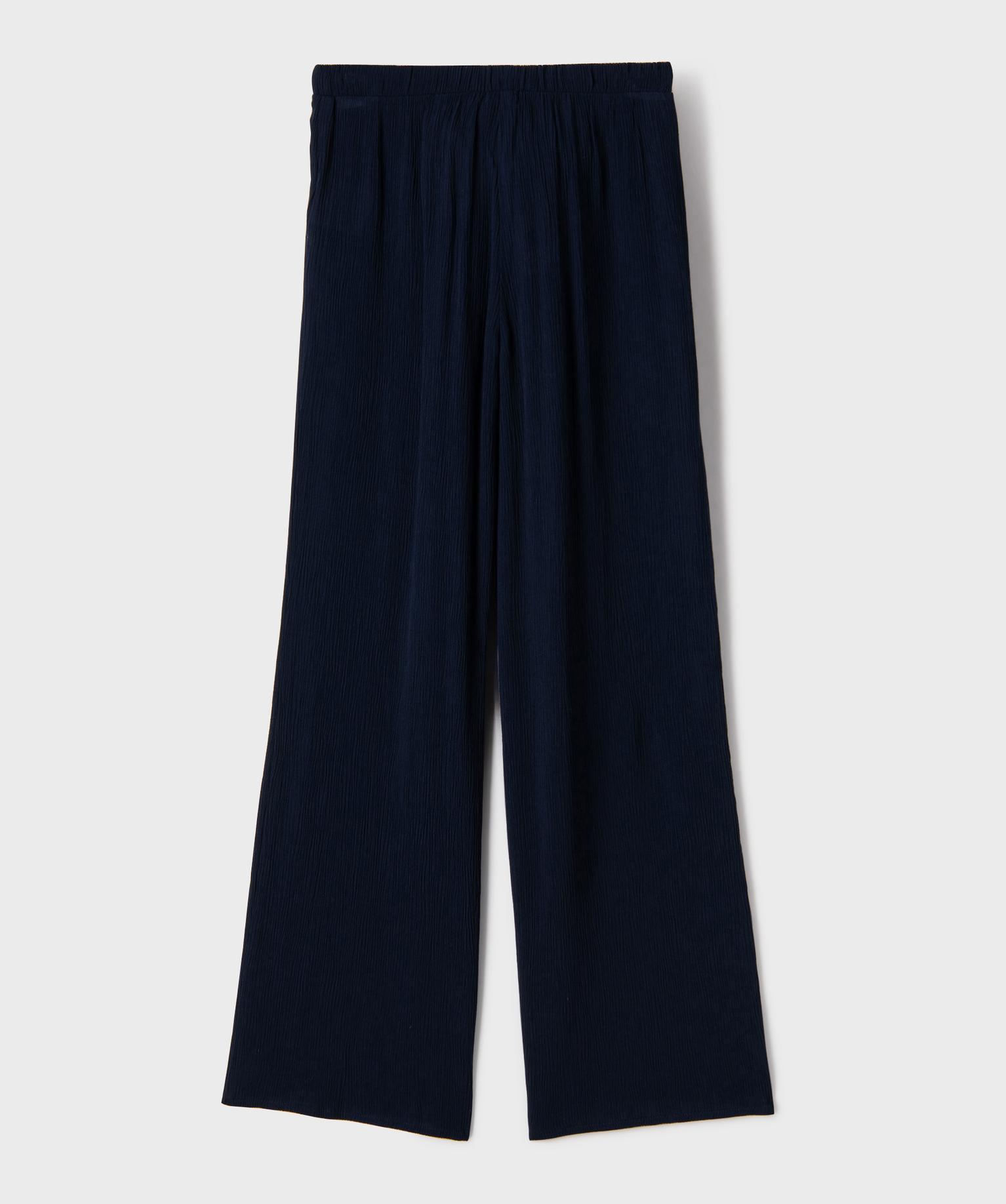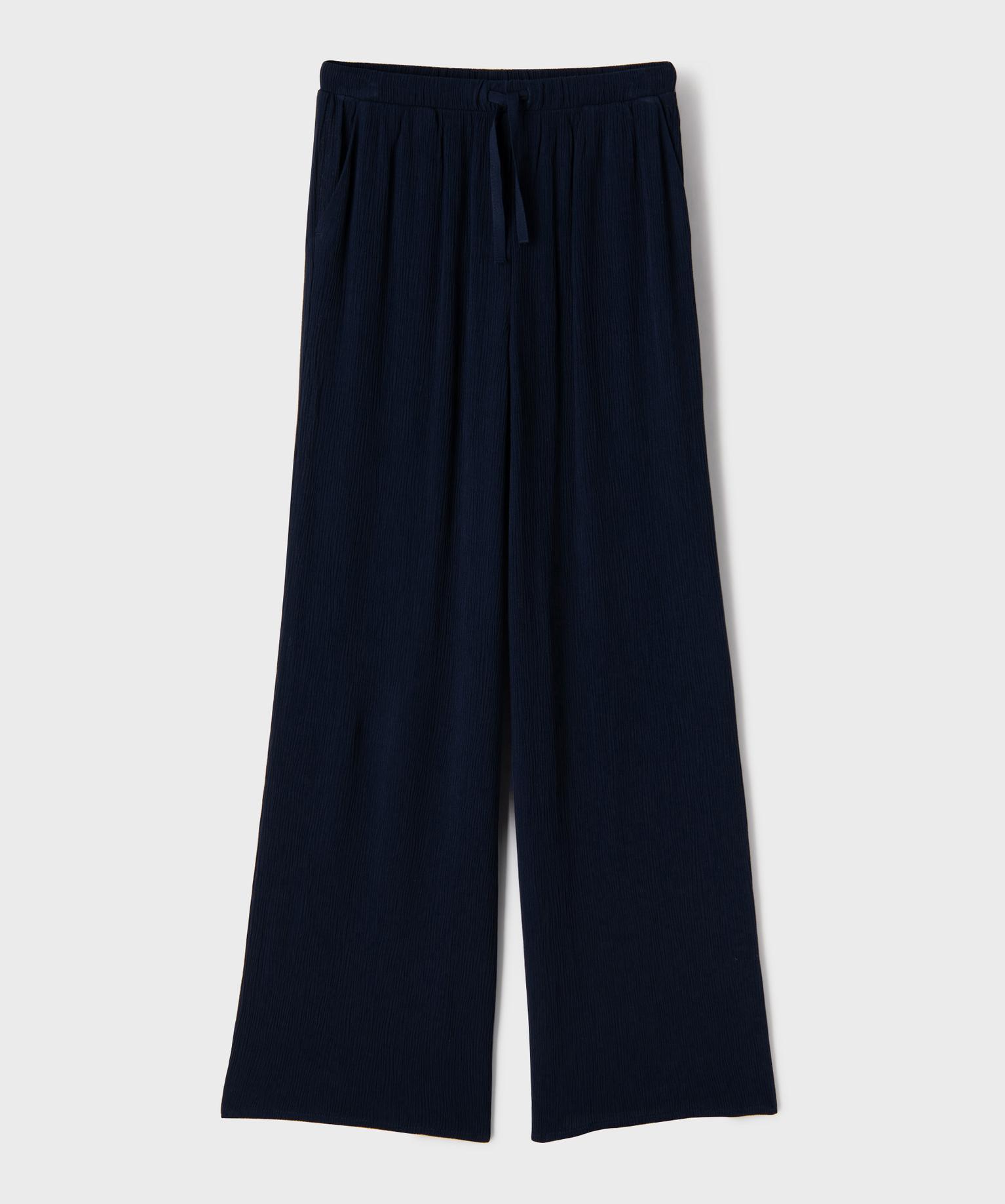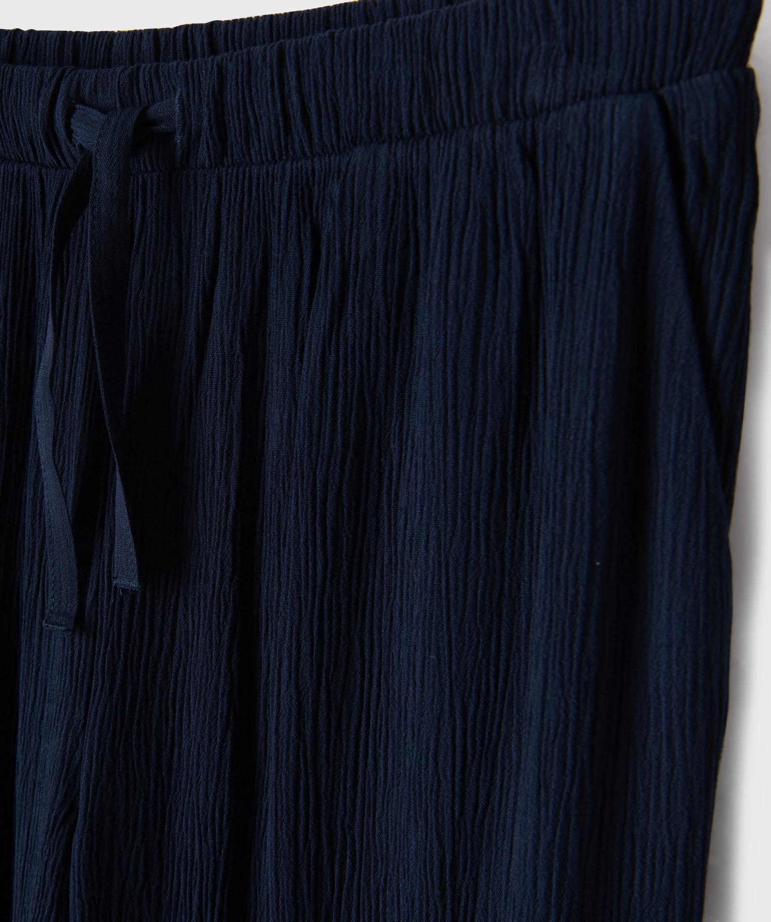 Pantalon large et fluide en viscose froissée fille marine