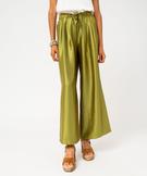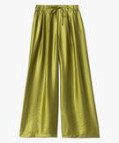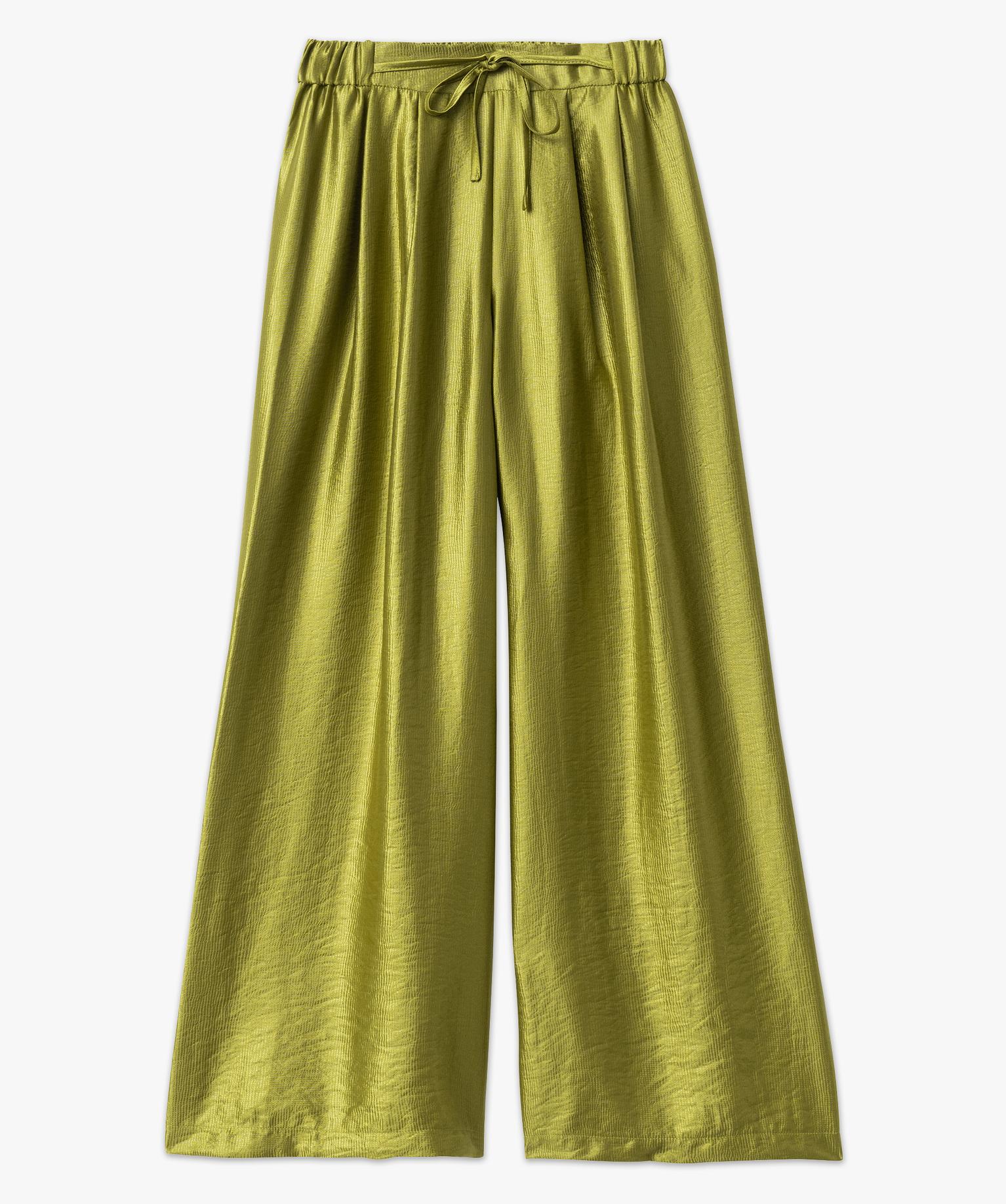 Pantalon large et fluide en viscose gaufrée et satinée femme vert