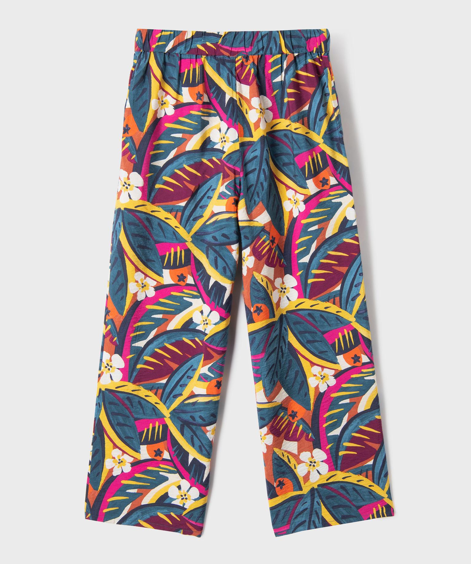 Pantalon large et fluide en viscose imprimé tropical fille vert