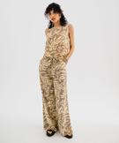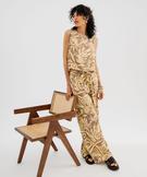 Pantalon large et fluide en viscose imprimée femme imprime feuillage