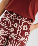 Laissez-vous séduire par ce pantalon femme ample et fluide, idéal dès les premiers beaux jours ! Ce pantalon imprimé est fabriqué dans une viscose subtilement froissée, pour un effet naturel. Il affiche un imprimé organique contrasté. Le pantalon large est équipé d'une taille élastiquée ajustable par un cordon coulissant rehaussé de perles fantaisie. 2 poches italiennes.