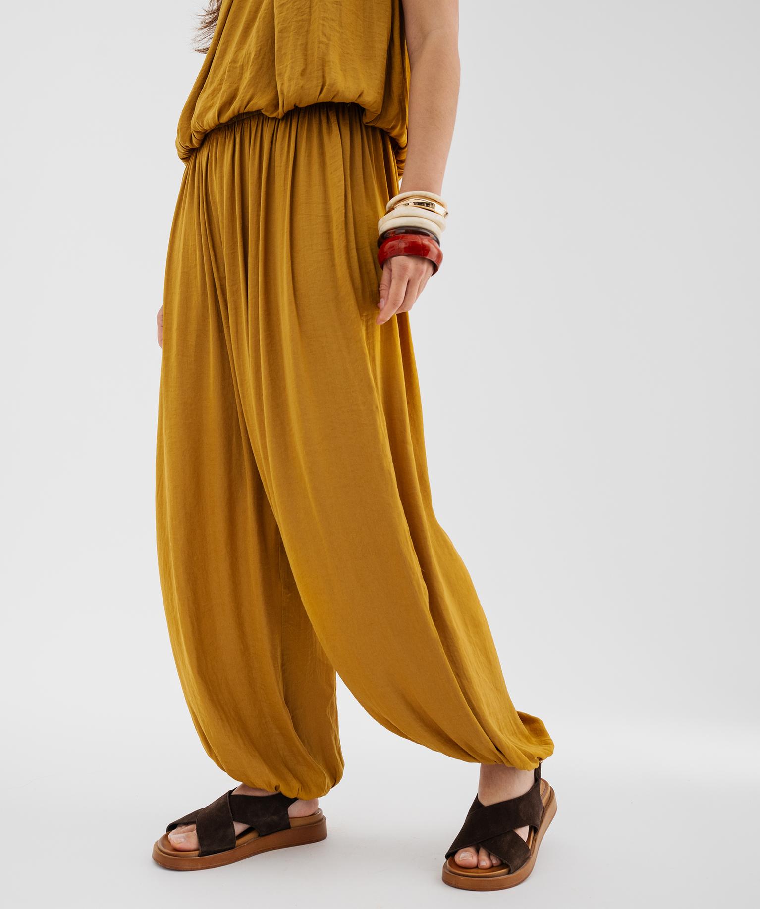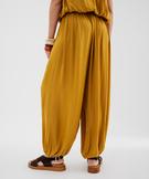 Pantalon large et fluide satiné look sarouel femme jaune fonce